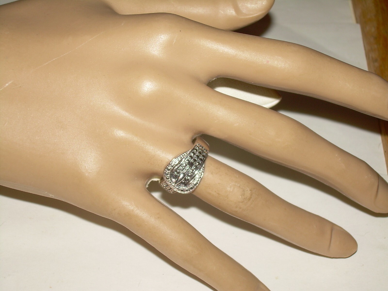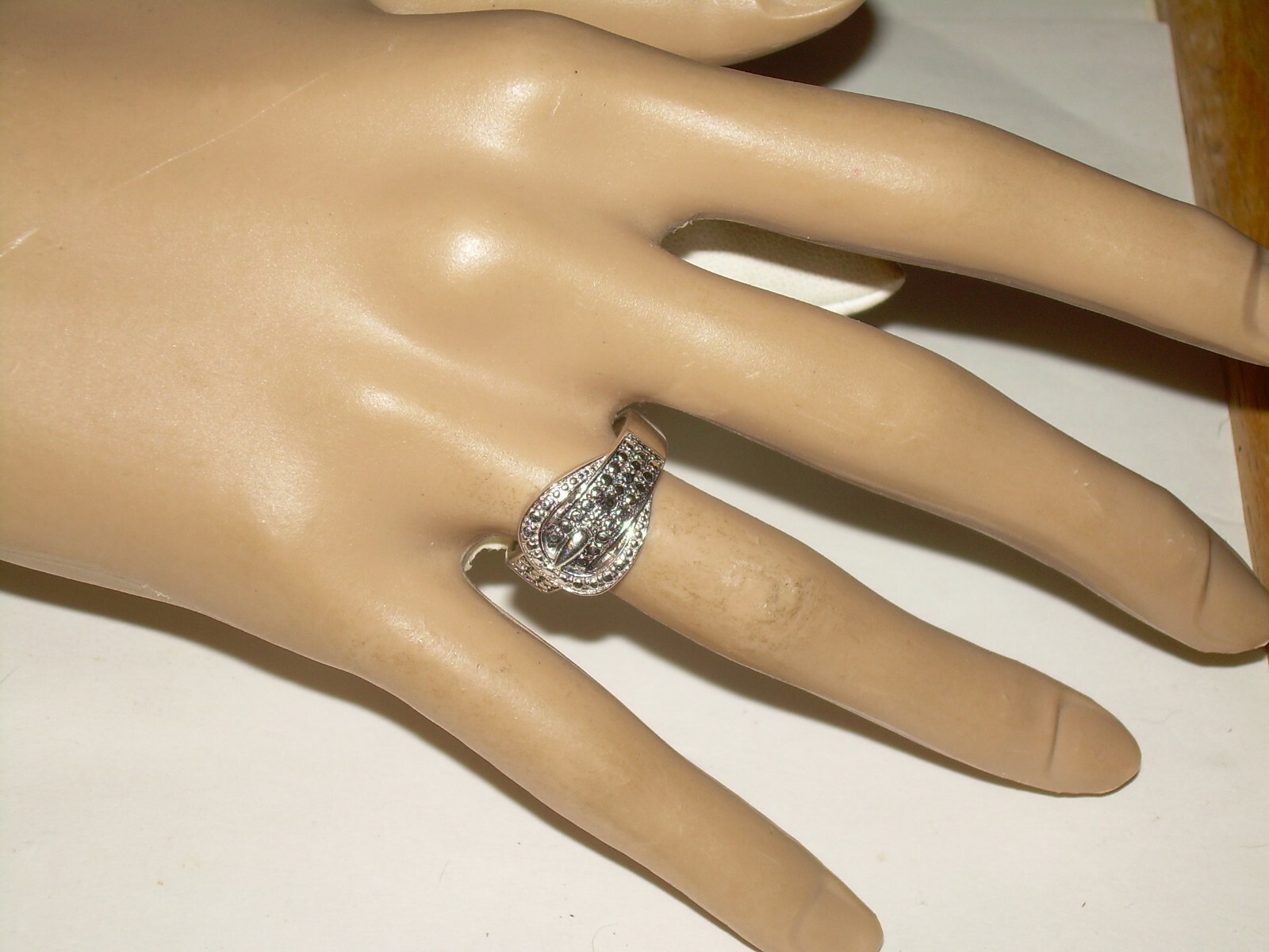 как выглядит Vintage Sterling Beaded Belt Ring - Marked 925, Signed DBJ, China, Size 7, 4.2 g фото