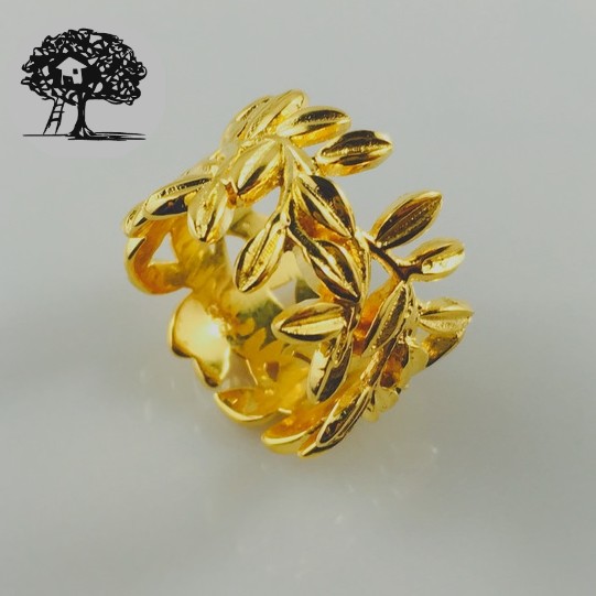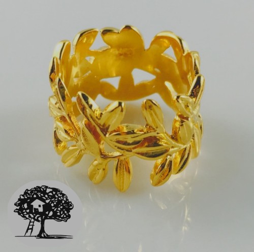 как выглядит Genuine Sterling Silver 18ct Gold Plated Leaf Ring Floral Design Size 7 - Boho фото