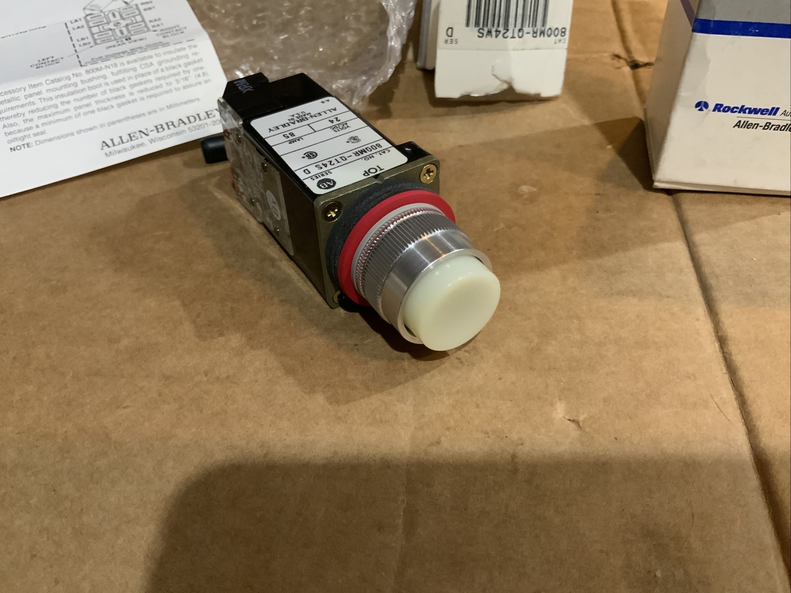 2 Allen Bradley 800MR-QT24WS Small Round PilotLight 24V WHITE LENS Push To Test