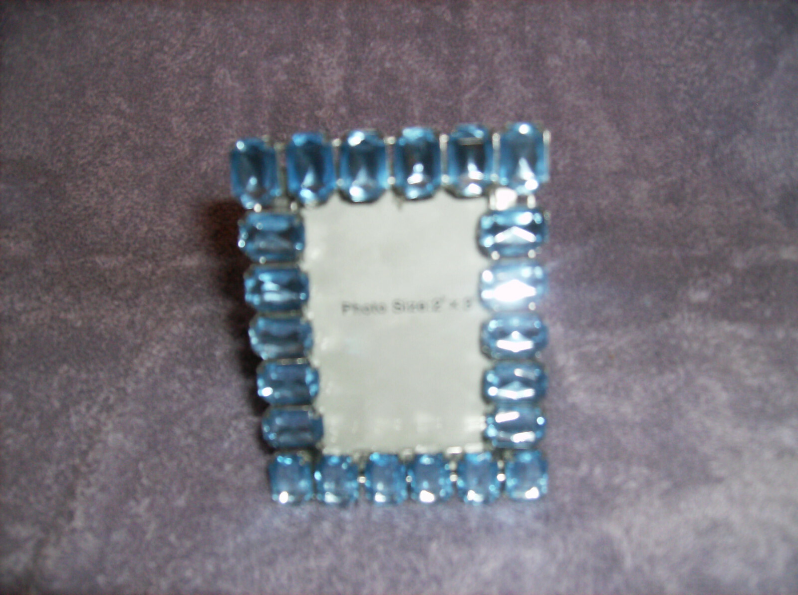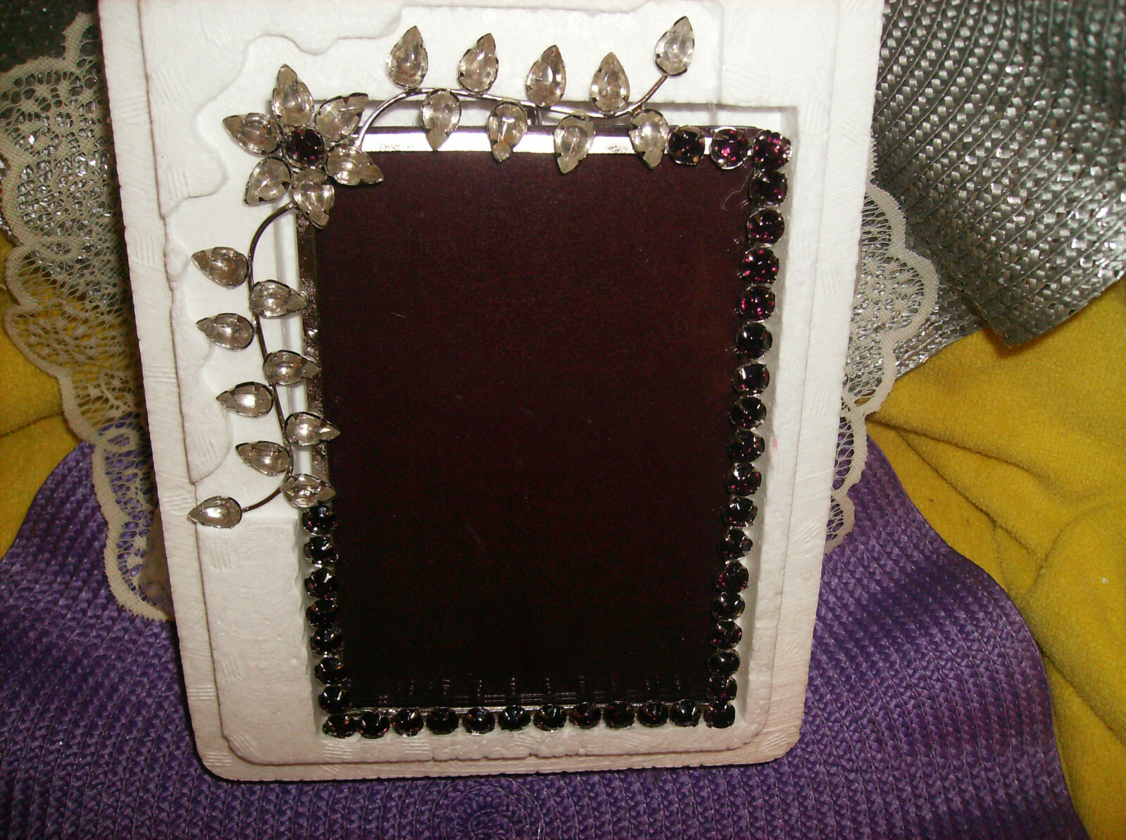 PURPLE GLASS JEWELED RHINESTONES GEMS PHOTO FRAME HOLDS 4x 6 HANG OR STAND NEW