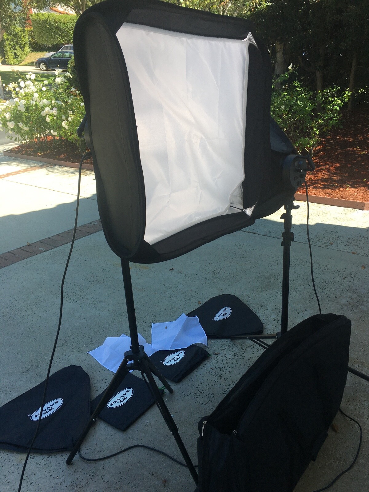 Savage LED studio lights x2 telescope stands with light diffusers