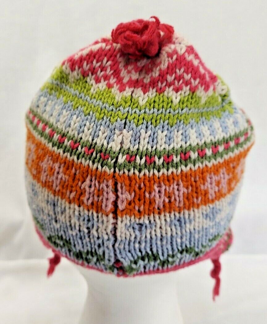Baby Gap 12-18 month Multicolored knit hat Girls Striped embroidery