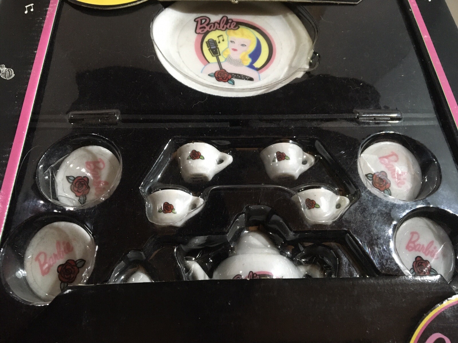 1995 Chilton Toys 12 piece Barbie Mini china TEA SET With Bonus Case