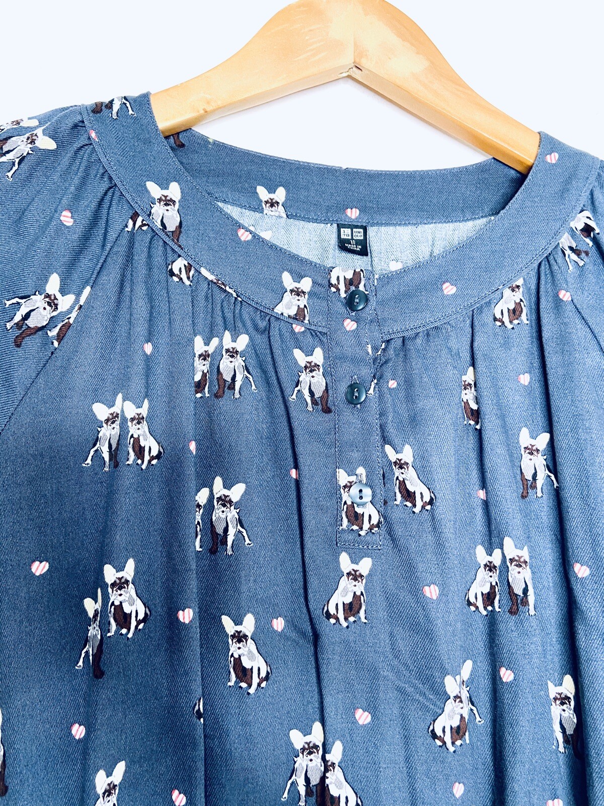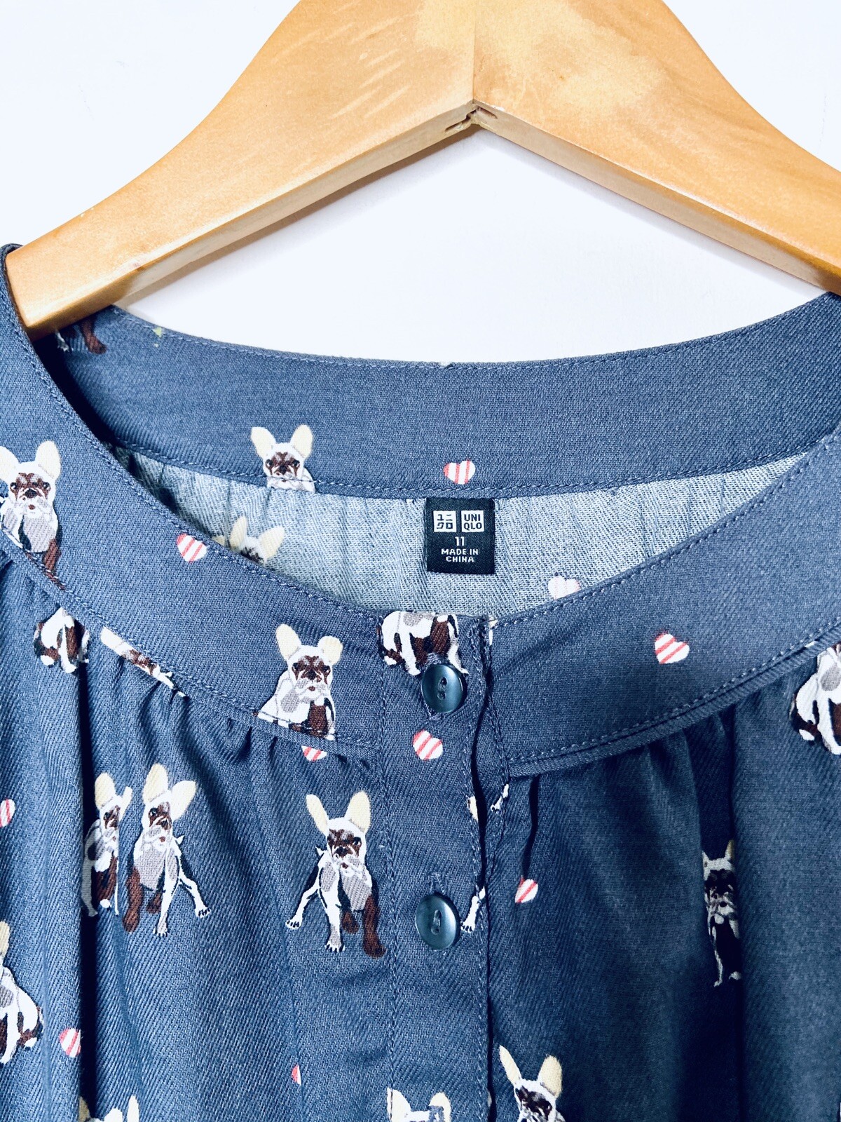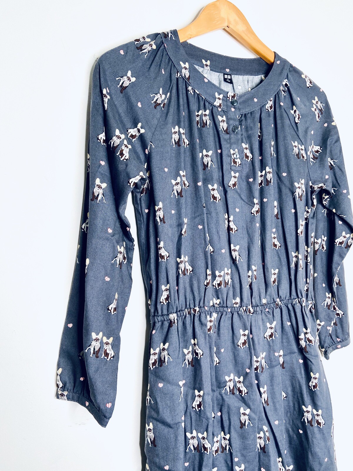 Uniqlo Kids Girls Long Sleeve Pullover Dress Gray Dog Puppy Print Sz S 11