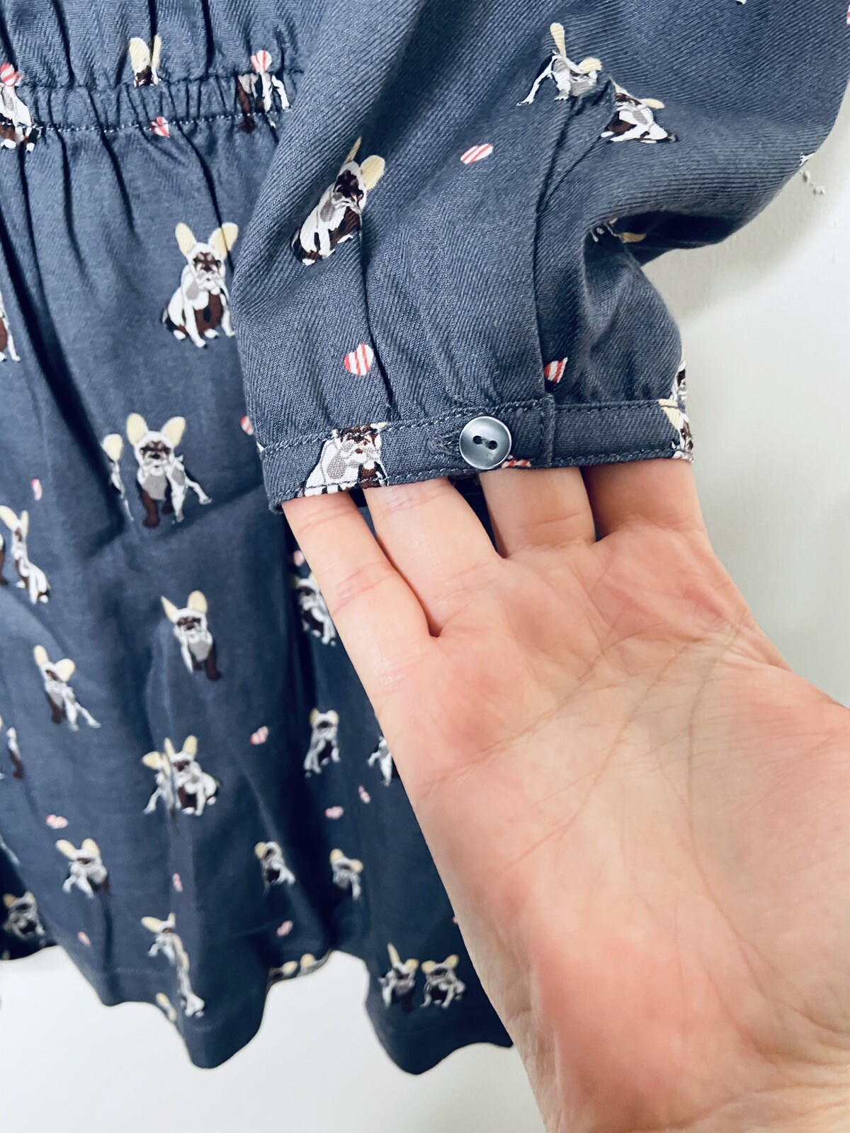 как выглядит Uniqlo Kids Girls Long Sleeve Pullover Dress Gray Dog Puppy Print Sz S 11 фото