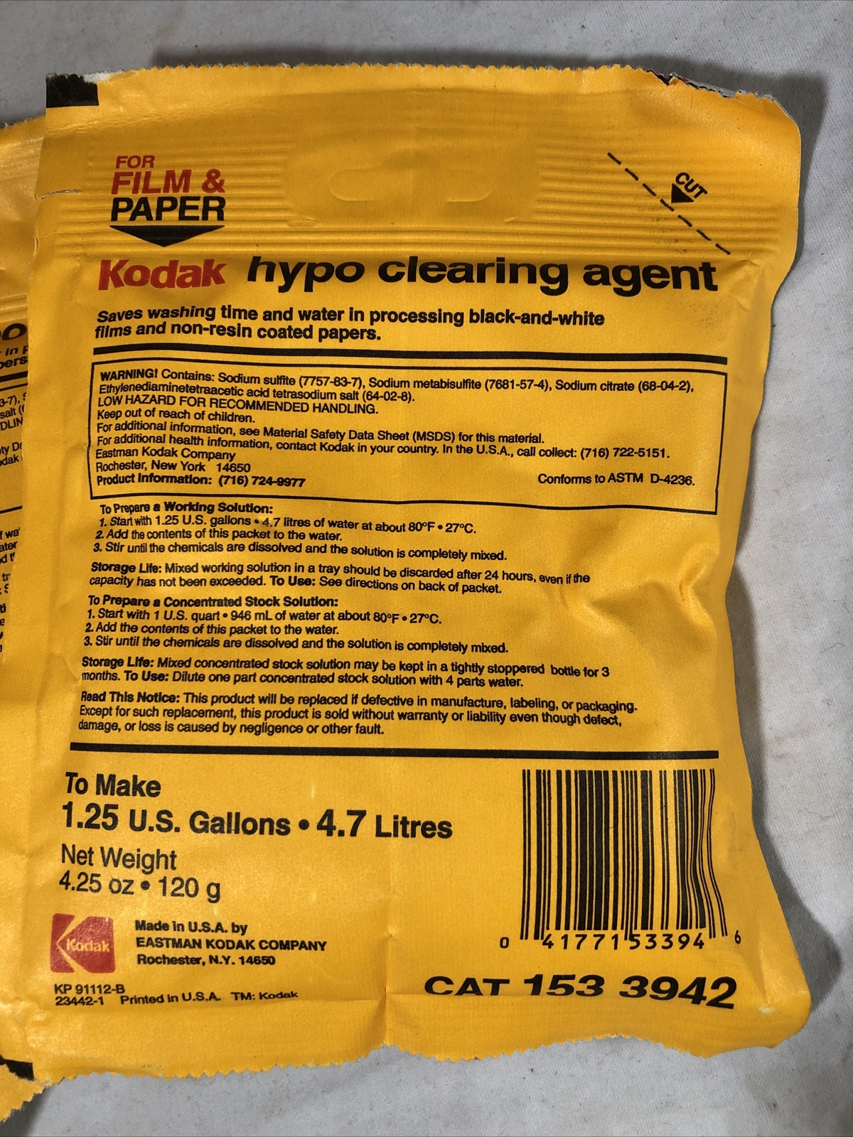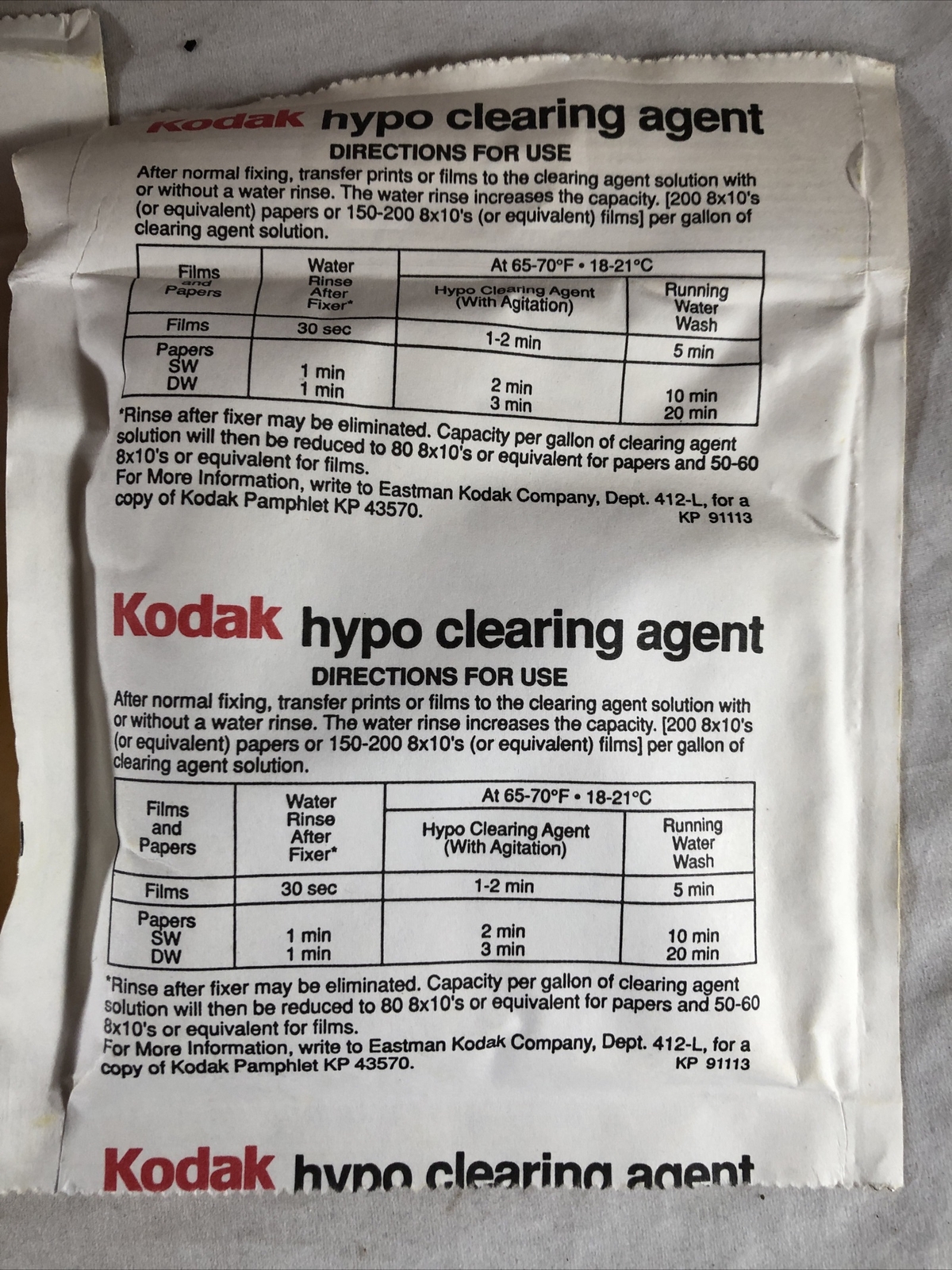 4 Kodak Hypo Clearing Agent for Black White Film Makes 1.25 Gallon of Chemical
