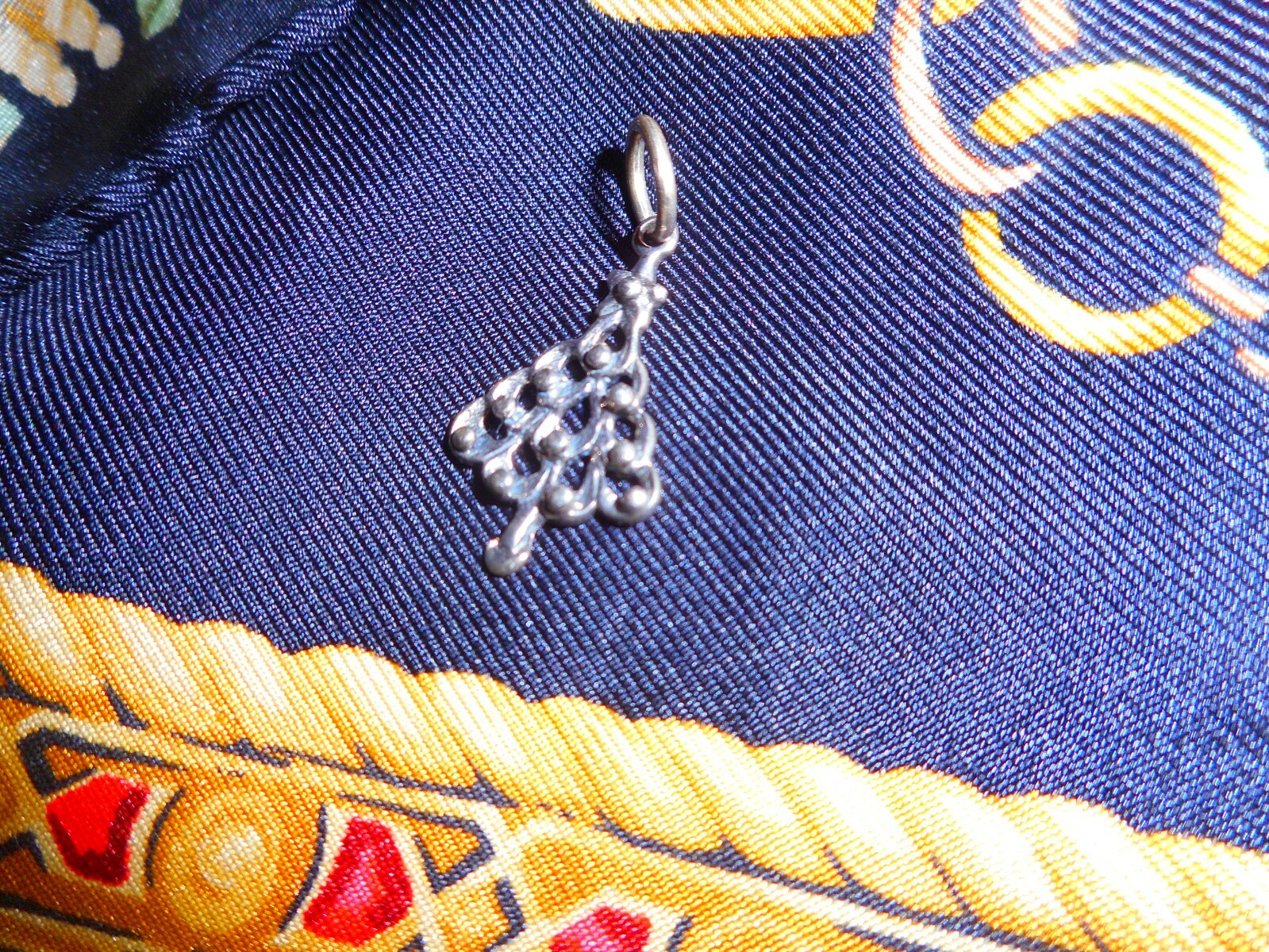 как выглядит Silk Scarf Sterling Silver Xmas Tree Charm Black Gold Red Equestrian Italy фото