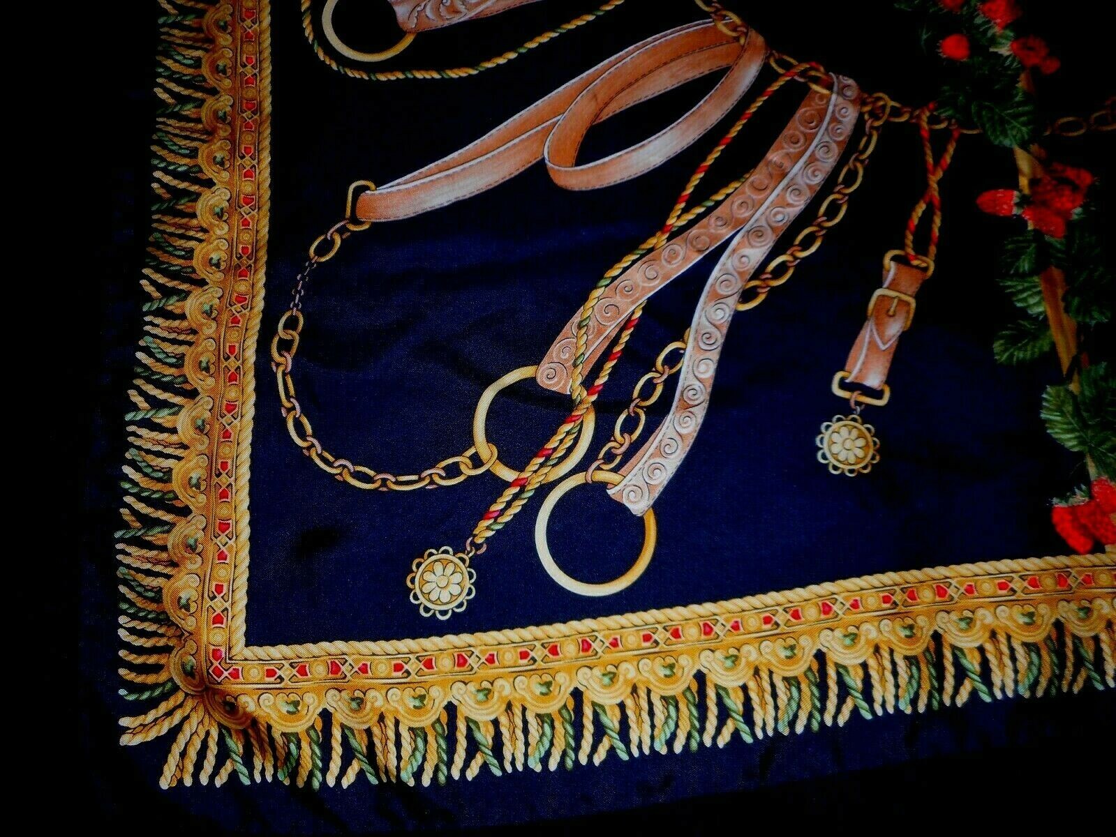 Silk Scarf Sterling Silver Xmas Tree Charm Black Gold Red Equestrian Italy