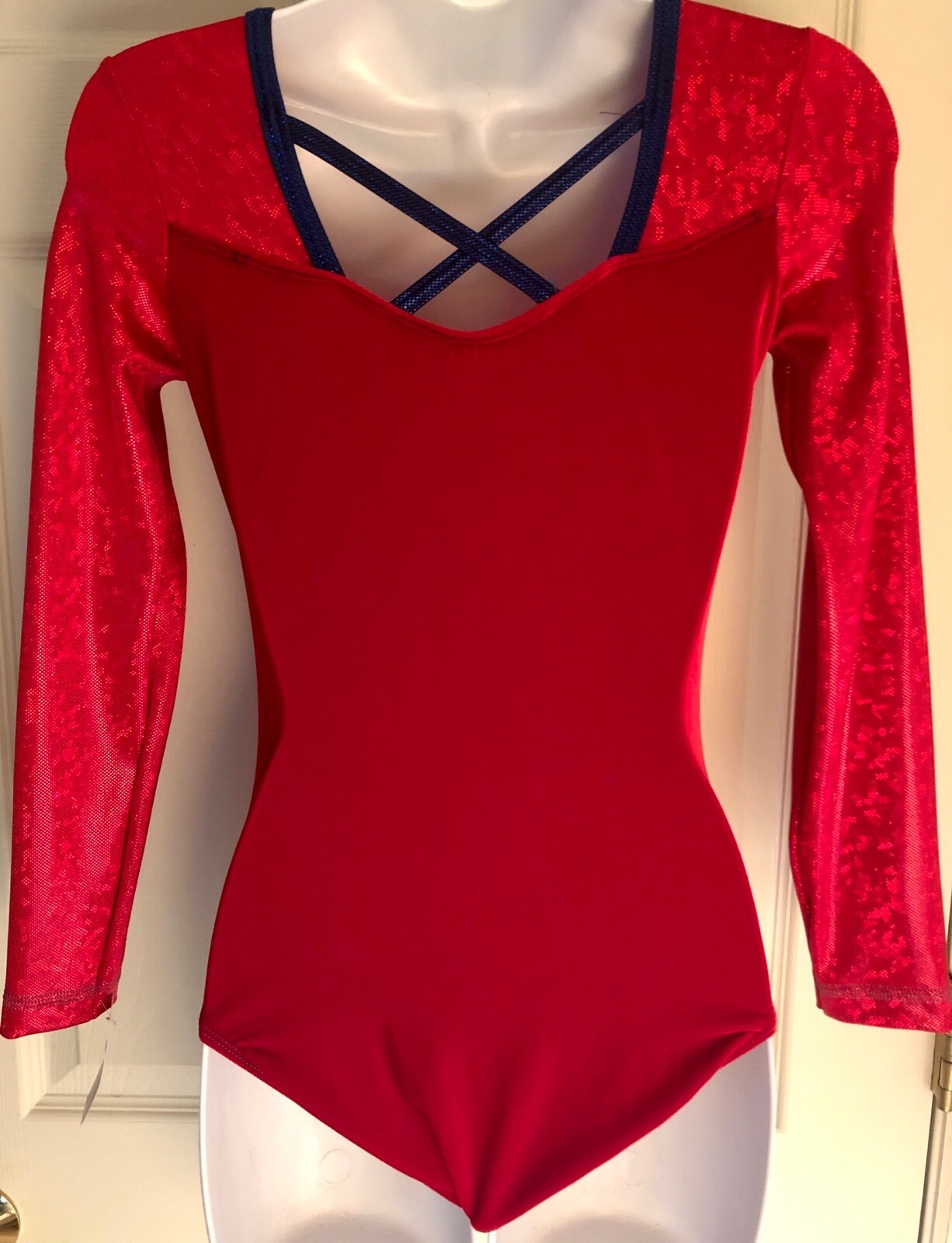 как выглядит GK Elite RED VELVET FOIL LgS Gymnastic Dance Leotard ADULT S фото