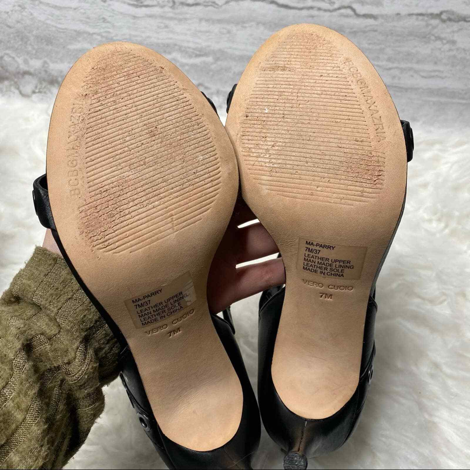 как выглядит BCBGMaxAzria Parry Metal Grommet Leather Stiletto Sandals Size 7 Black Silver фото