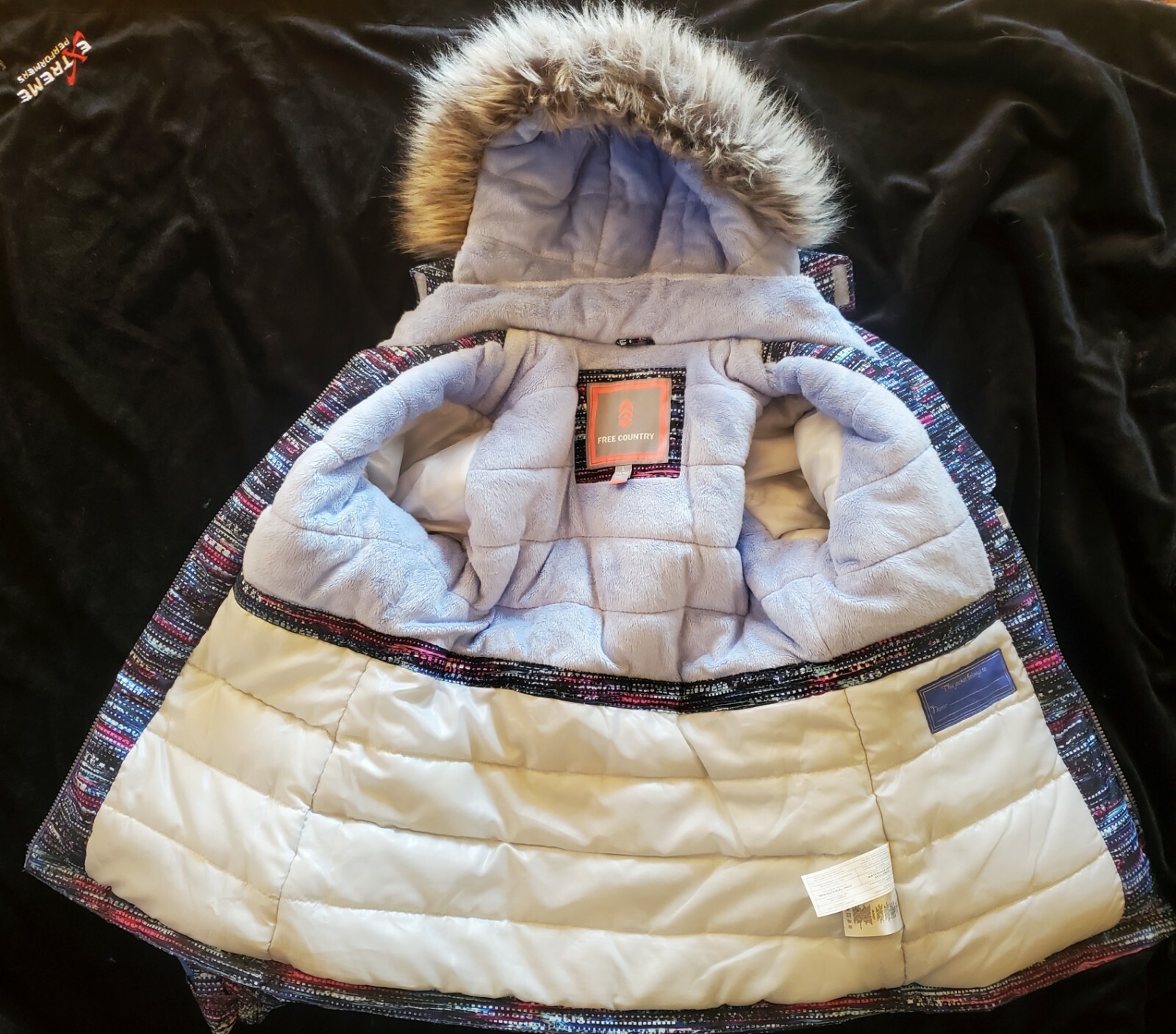 как выглядит Free Country - Girls L 14/16 Blue with pattern Hooded winter coat фото