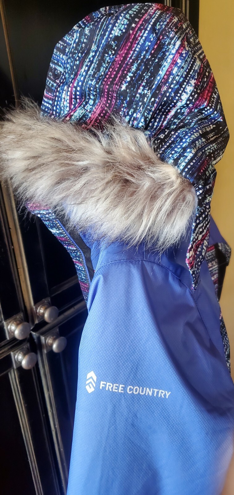 Free Country - Girls L 14/16 Blue with pattern Hooded winter coat