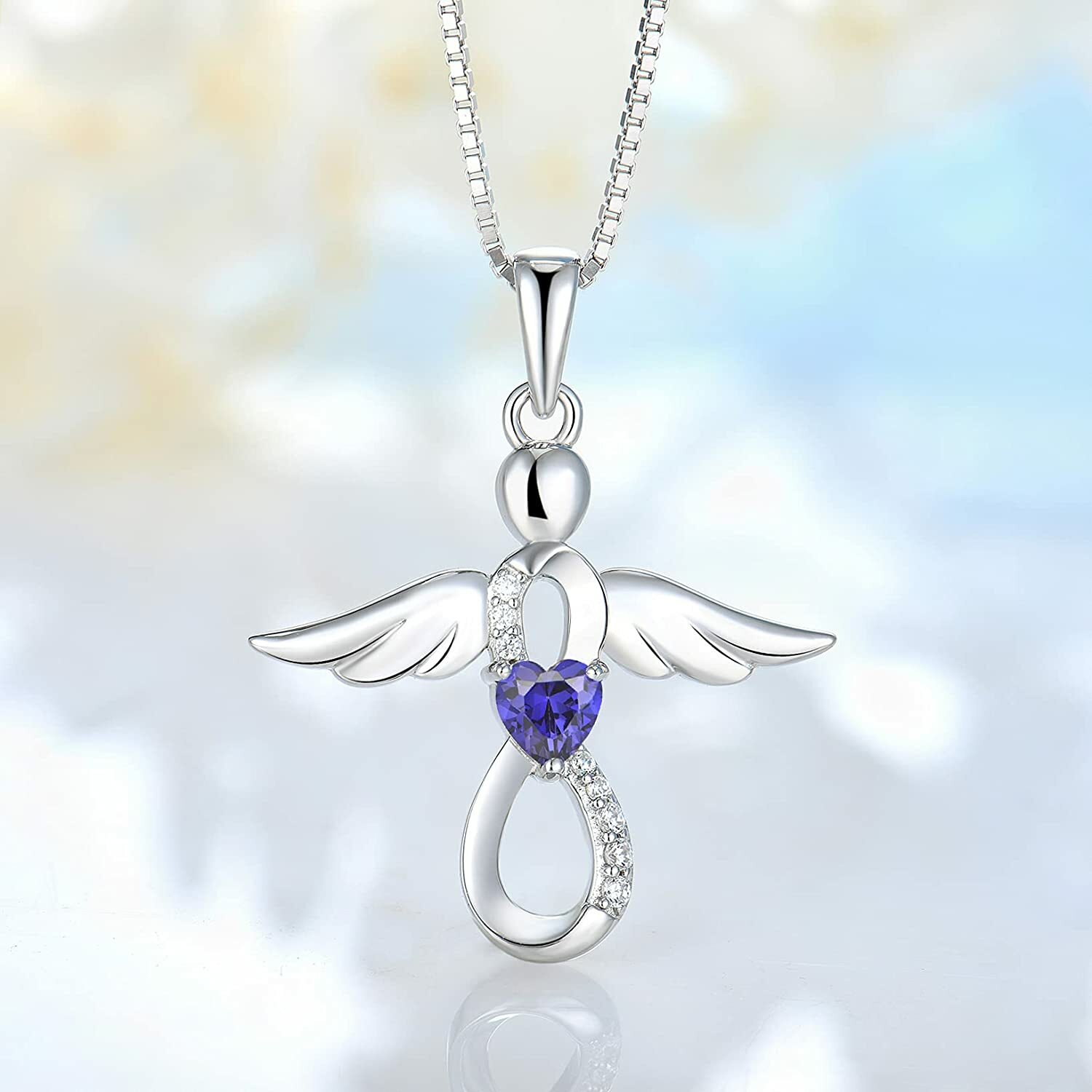 Infinity Guardian Angel Wings Necklace for Women Birthstone Sterling Silver Gift