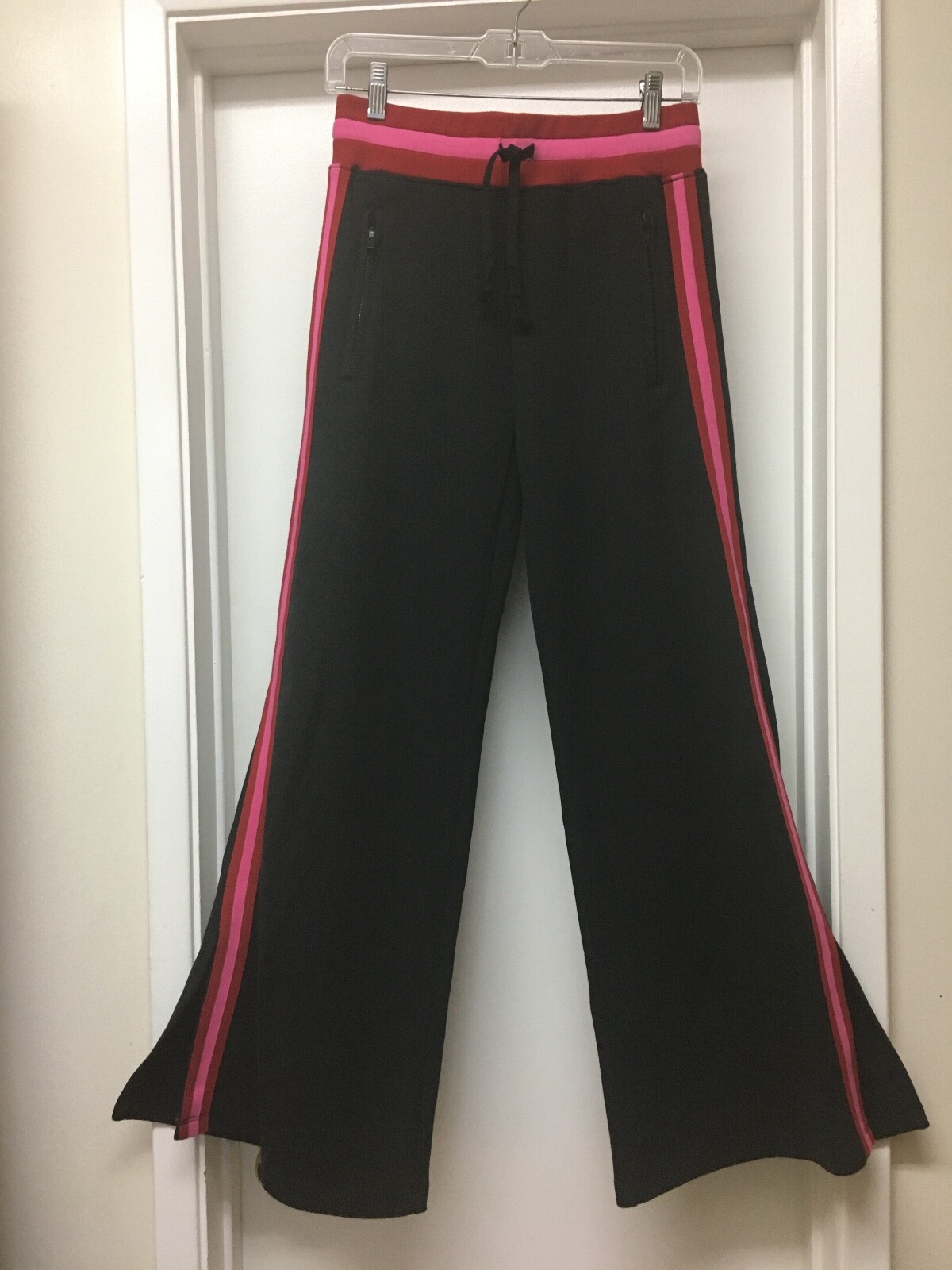NWT 148 Joie Tsukimi Black Wide Leg Track Pants Drawstring Split Leg Red Sz XXS