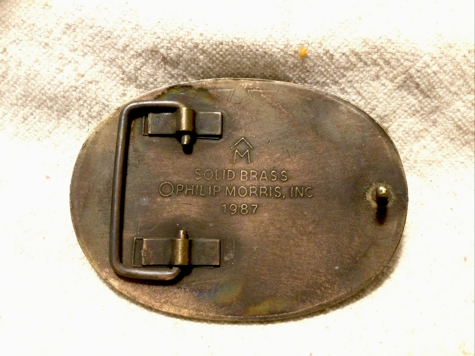 как выглядит Vintage 1987 MARLBORO Longhorn Steer Solid Brass, Western Belt Buckle фото