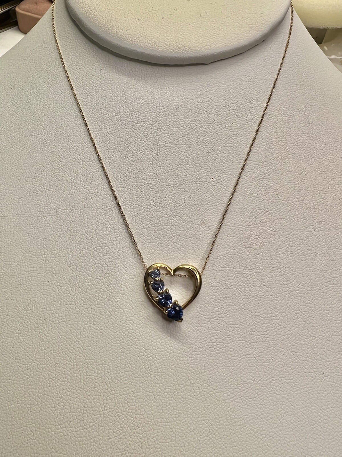 как выглядит 10K Yellow Solid Gold Blue Heart Shape Stone Necklace 16 1.6grams фото