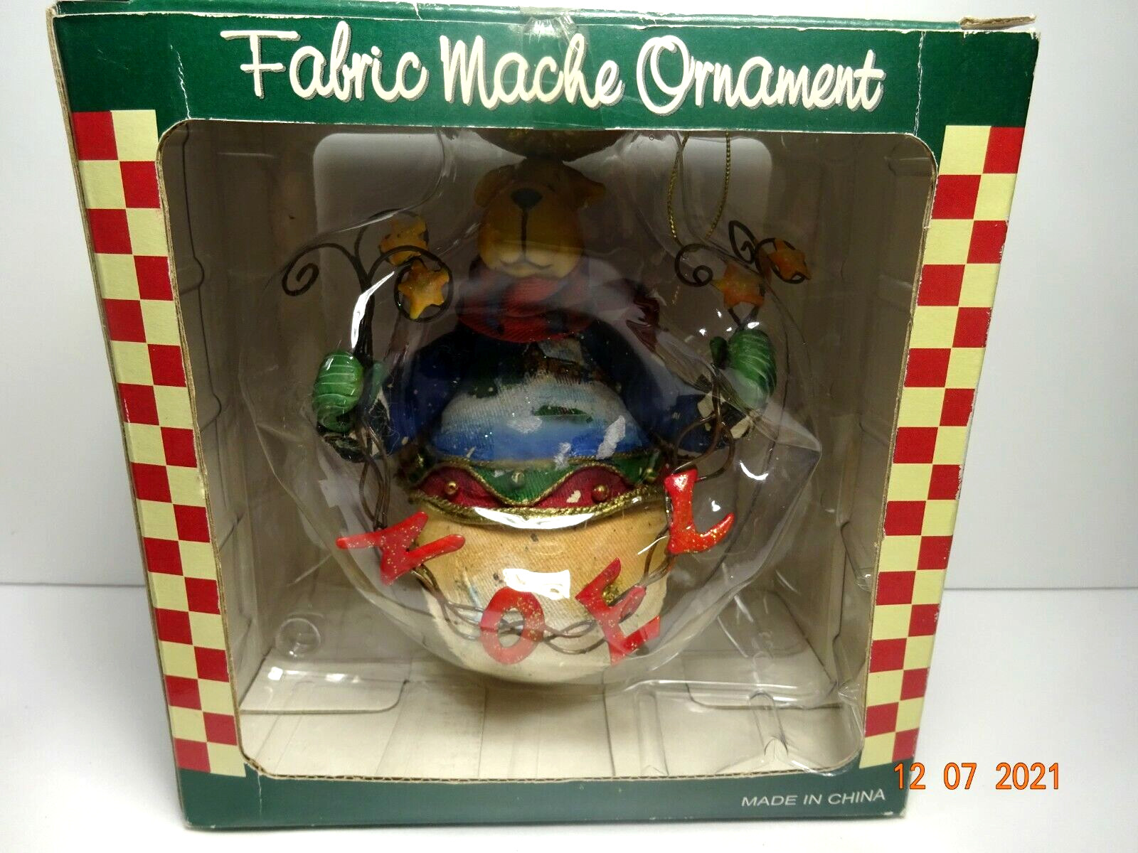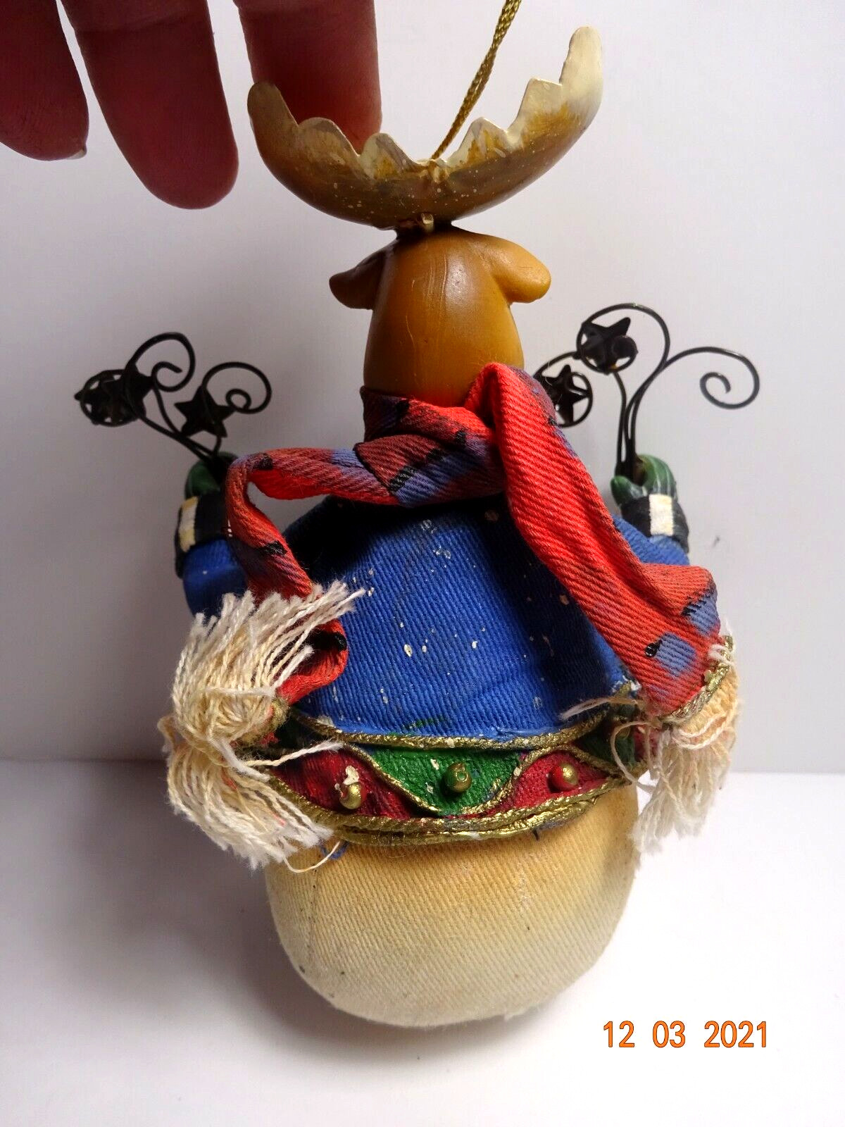• SWE In Orig. Box Moose Fabric Mache 6 1/2" Christmas Tree Ornament