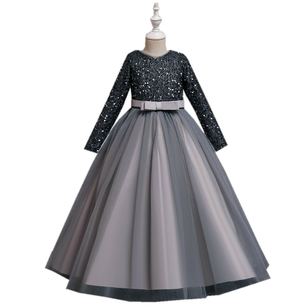 Shiny Long Sleeve Kids Long Dress Girls Princess Dress For Wedding Party Dance