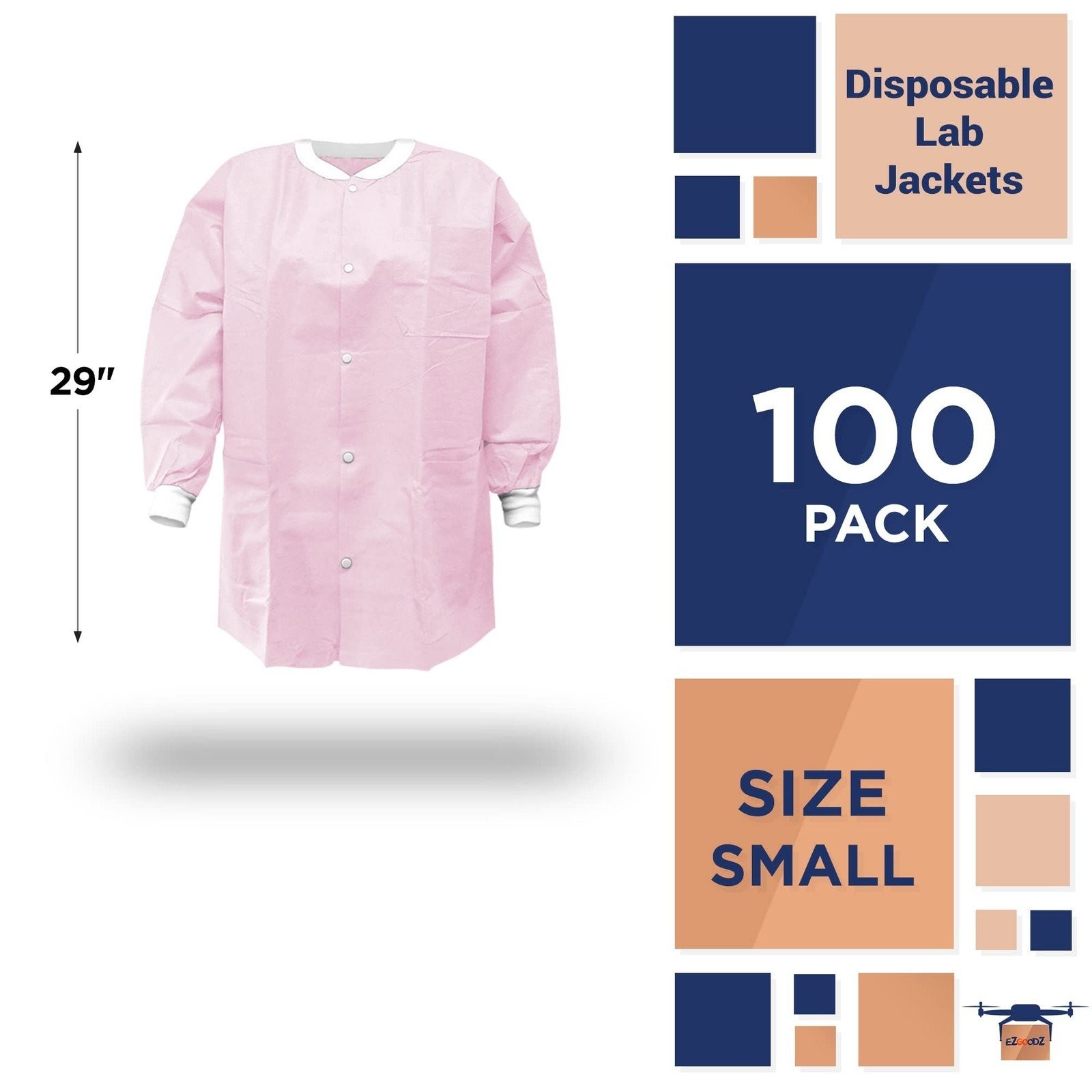 Disposable Lab Jacket, 29 Long Light Pink Small - Pack of 100, 3 Pockets