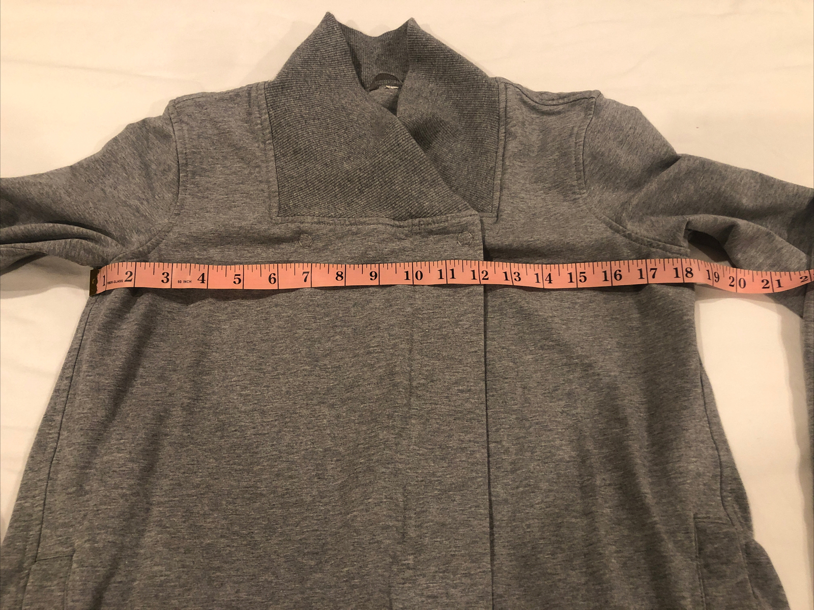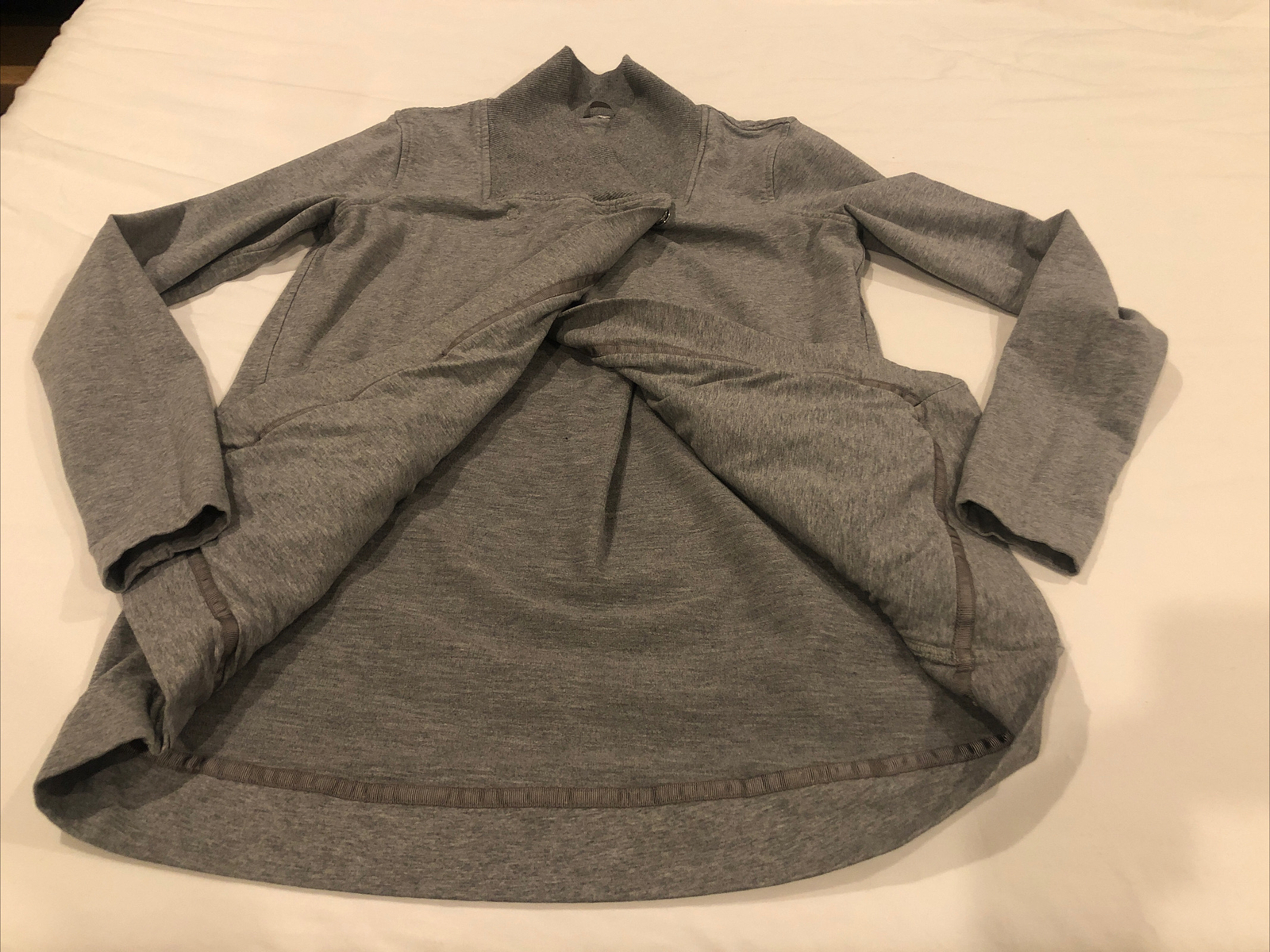 Lululemon size 4 gray 2 snap Wrap jacket 2 pockets thumb holes longer jacket