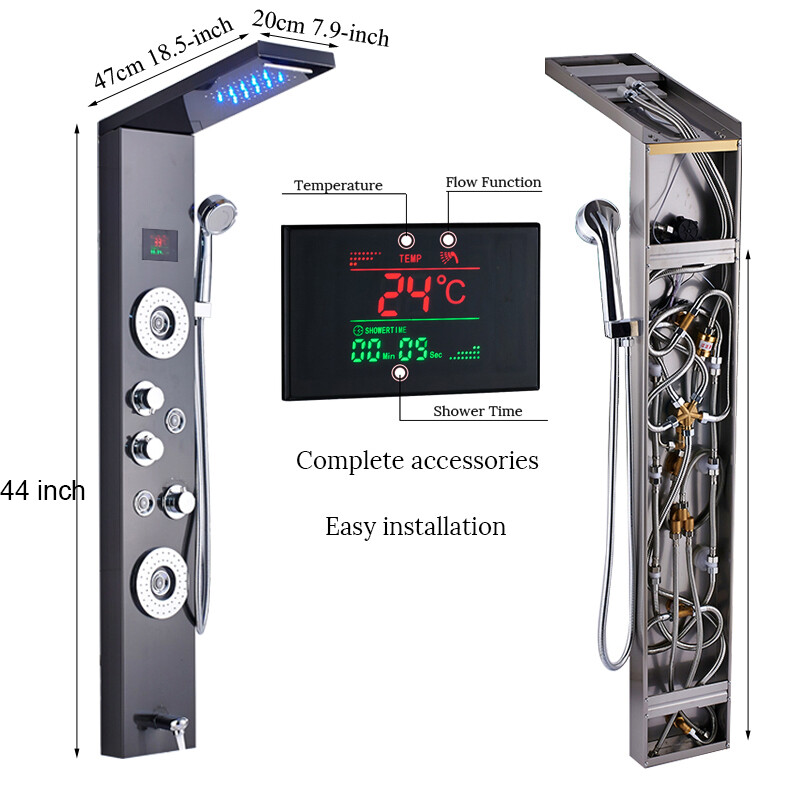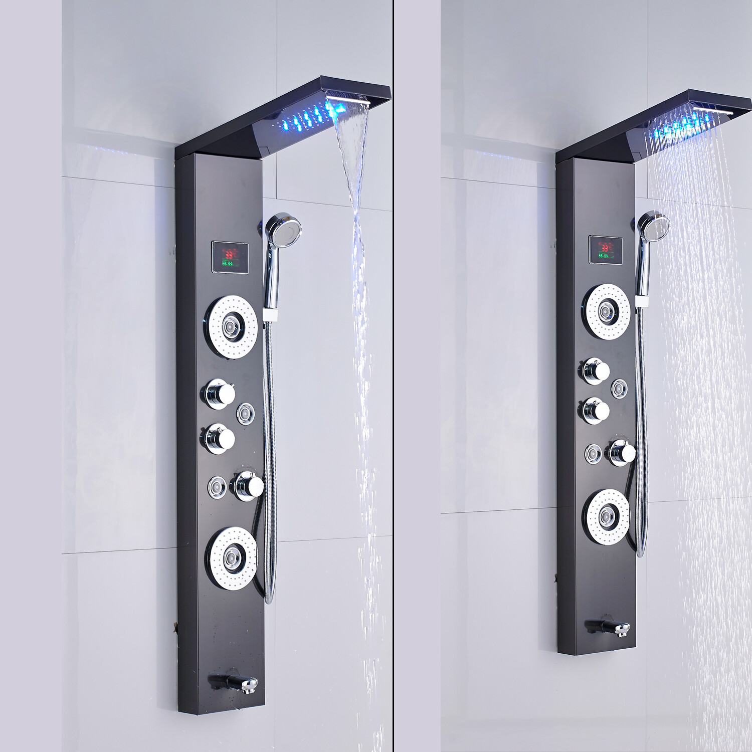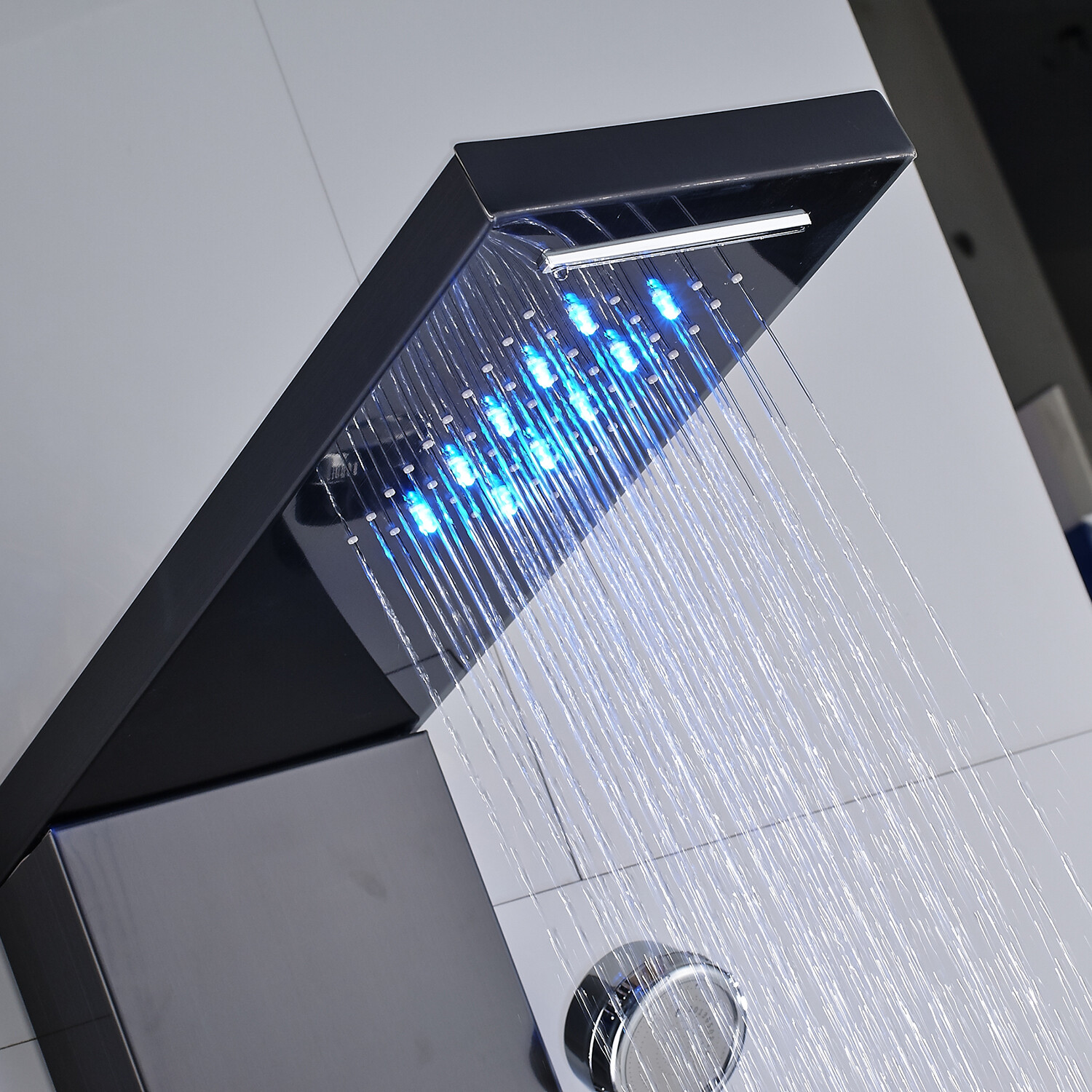 Shower Tower Panel System Stainless Steel Body Massage LED Rainfall Waterfall