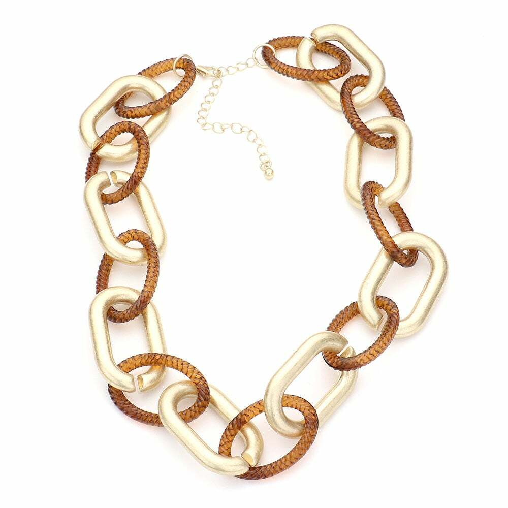 как выглядит Pierced matte gold and brown link necklace and earring set фото