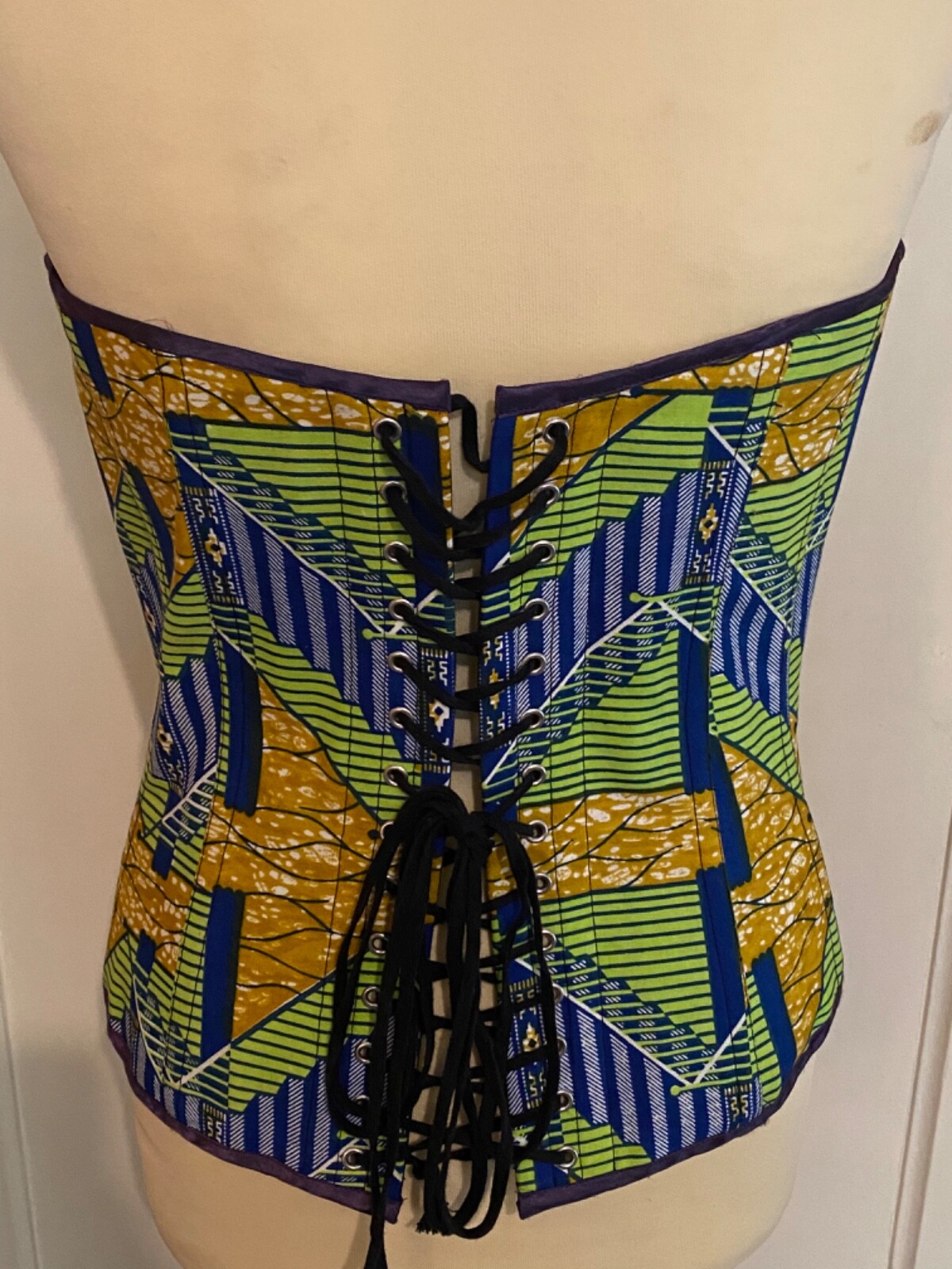 как выглядит Steel boned busk front Southern African print corset 34 inches waist фото