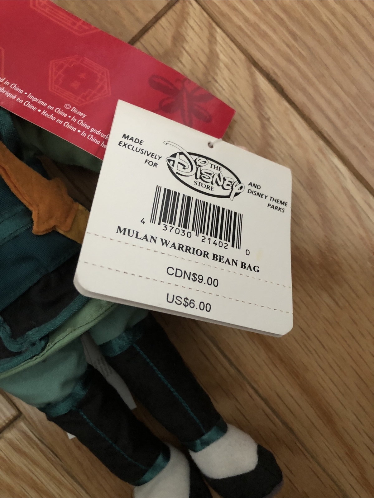• Disney Store Parks Mulan Warrior Bean Bag Plush Doll Toy Tags 8"