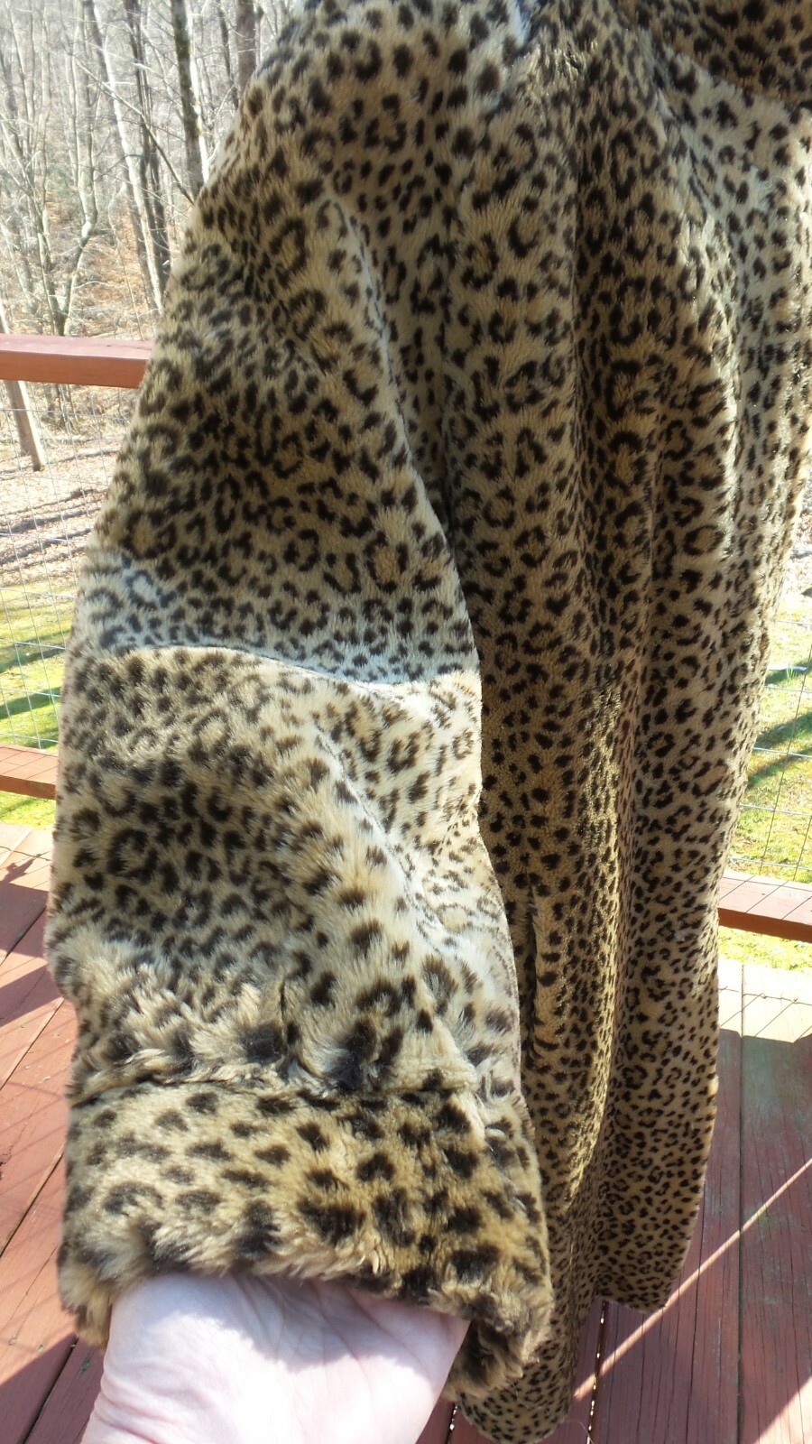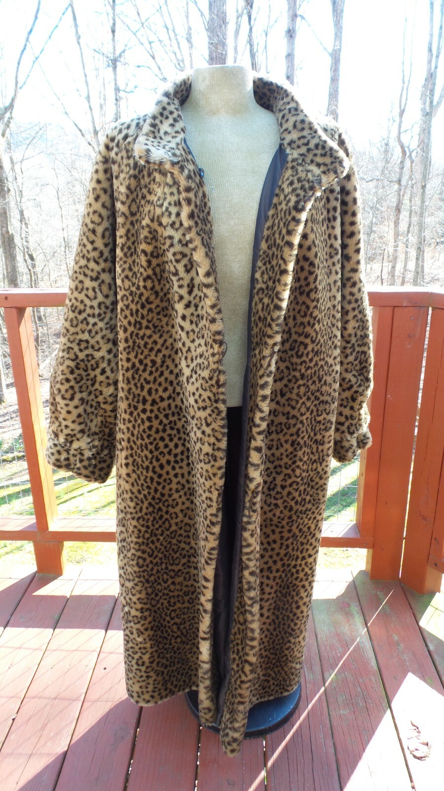 как выглядит Vintage Leopard Print Faux Fur Long Trench Coat size -12- Large фото