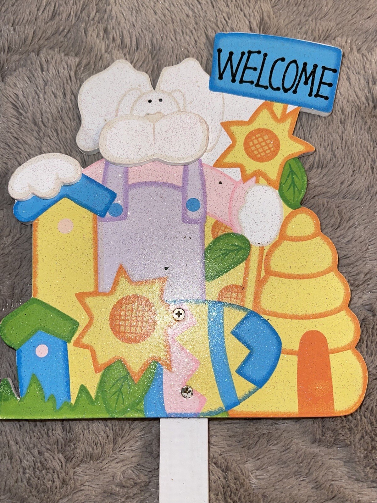 • Easter Bunny Welcome Happy Easter 18 Wooden Yard Signs Set X2 Never Used