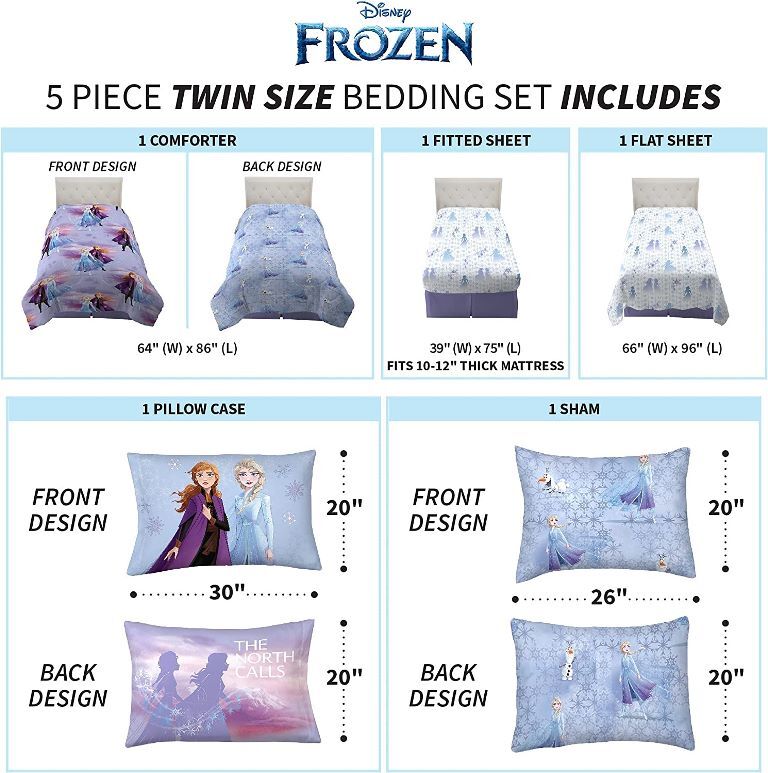 как выглядит Disney Frozen 2 "Snowflake Magic" Kids Reversible Twin Bed Set - AB07TC637H73 фото