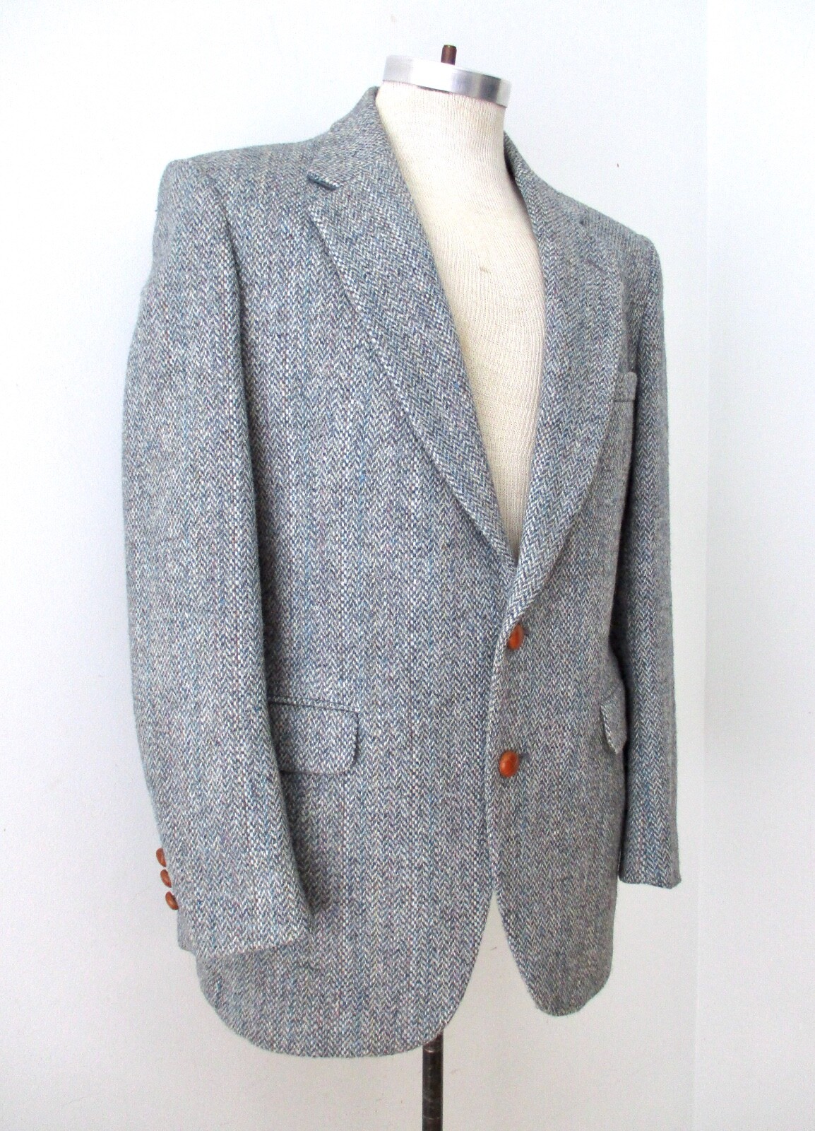 как выглядит EUC Vtg 80s Harris Tweed Blue Speckled Chevron Blazer Prof Jacket Duck Lining 40 фото