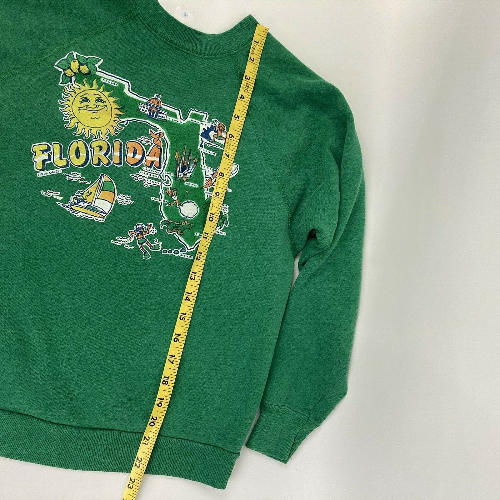 VTG Tultex Florida FL State Crew Neck Sweatshirt Green Tourist Souvenir Youth M