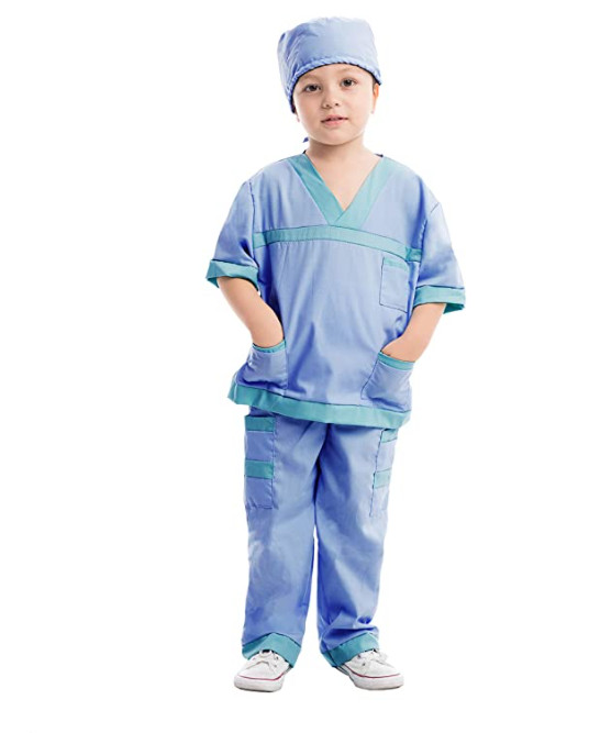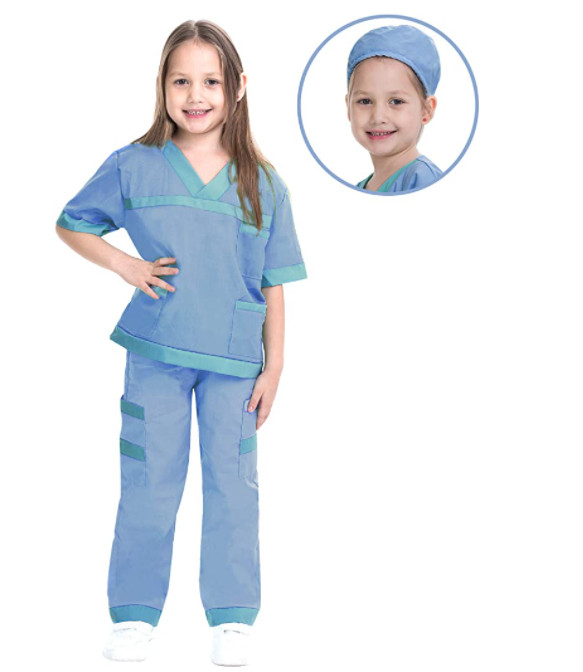 Kids Costume Scrubs Nurse Vet Doctor Costume Scrubs, Cap Boy Girl Unisex M 8/10