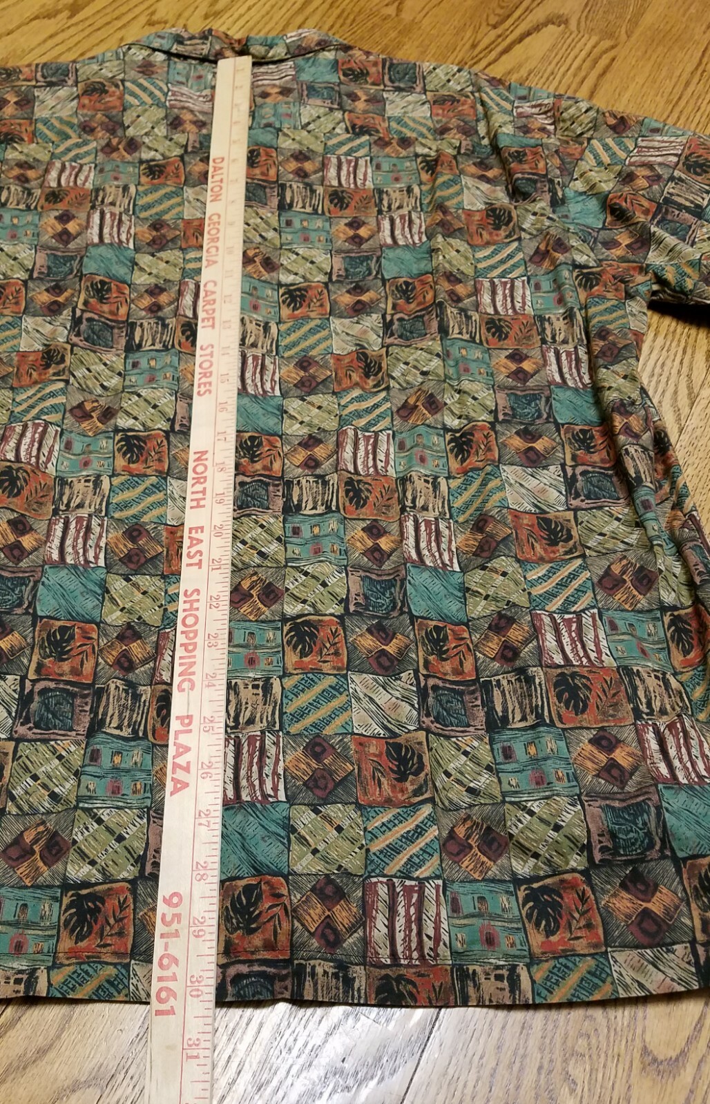 как выглядит XL Vintage TORI RICHARD Honolulu Hawaii ALOHA SHIRT Tribal Leaf Squares Cotton фото