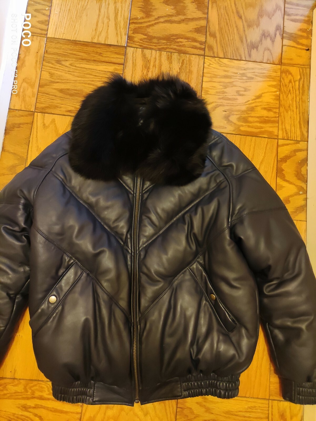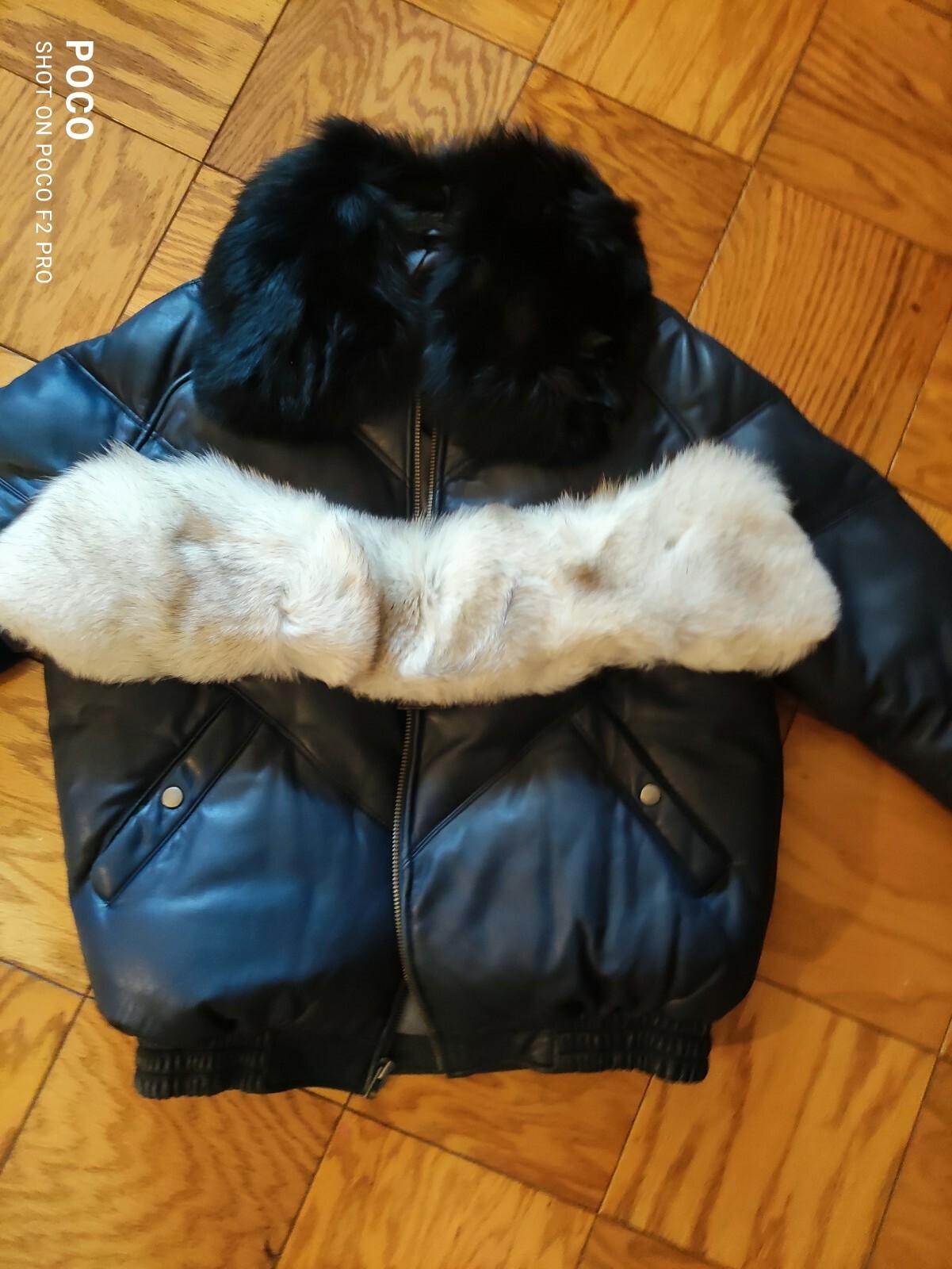 Leather V bomber coat with 2 removable REAL FUR Collars by Mason and Cooper