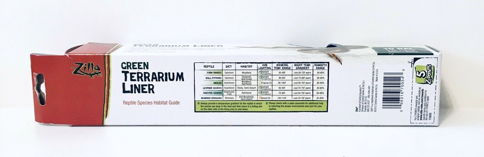 Zilla Green Terrarium Reptile Carpet Liner - 10 gallon