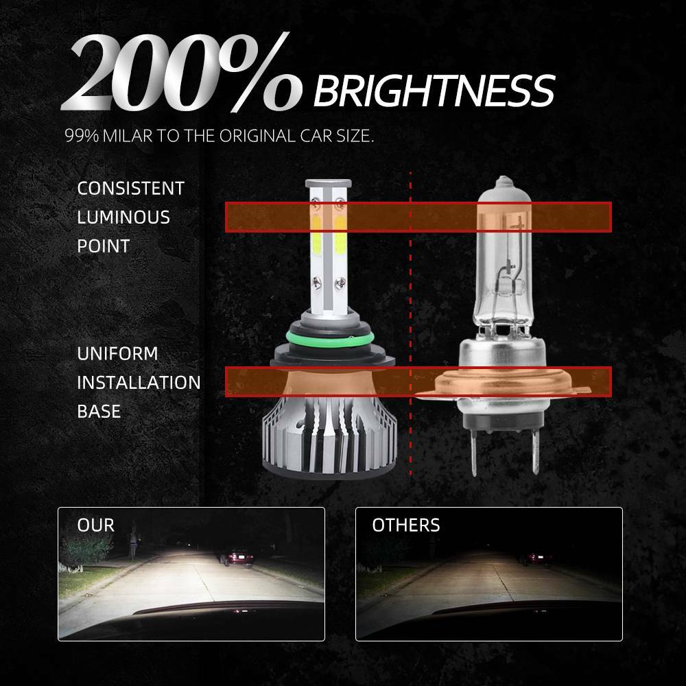 2 pcs LED Headlight Light Bulb 4 Side 9006 Low Beam Led Car Headlight White