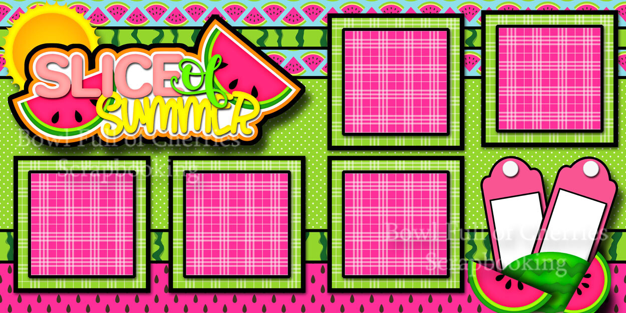 SLICE OF SUMMER 2 two premade scrapbook pages paper CHERRY watermelon 0306