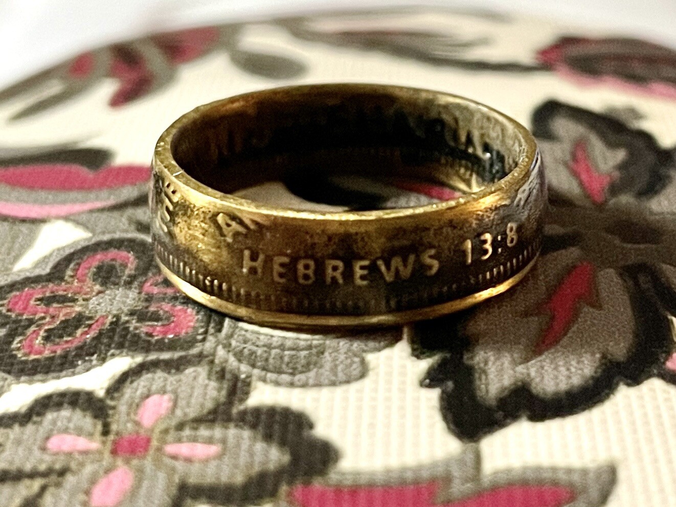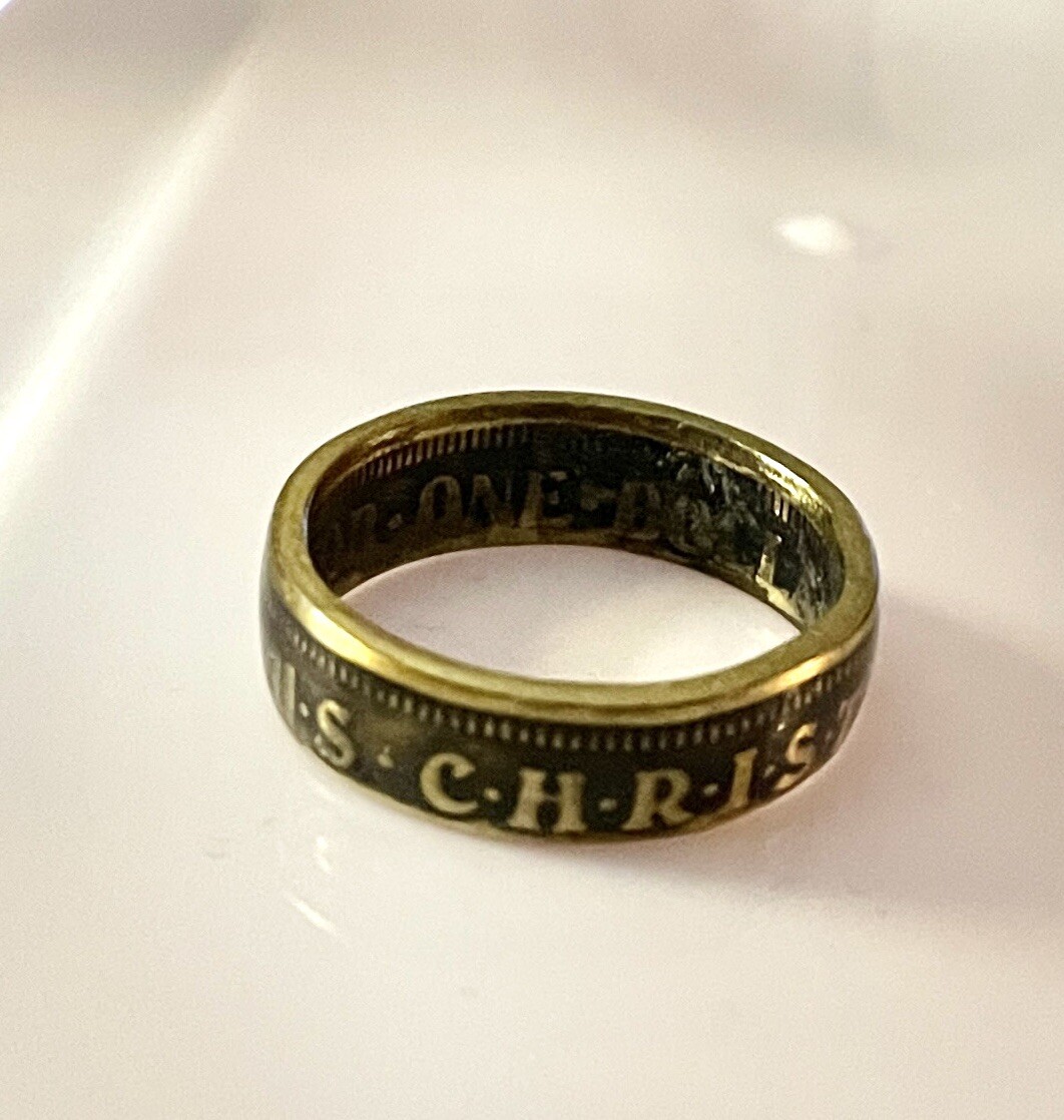Hand Crafted Ring From Real Coin Christian Based Spiritual Size 7.5