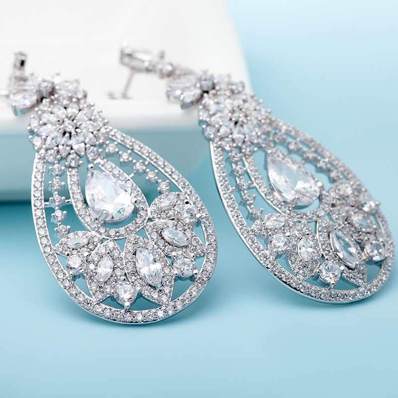 как выглядит All AAA Cubic Zirconia CZ Pierced Earrings Wedding Party Prom Pageant 5.6cm Long фото