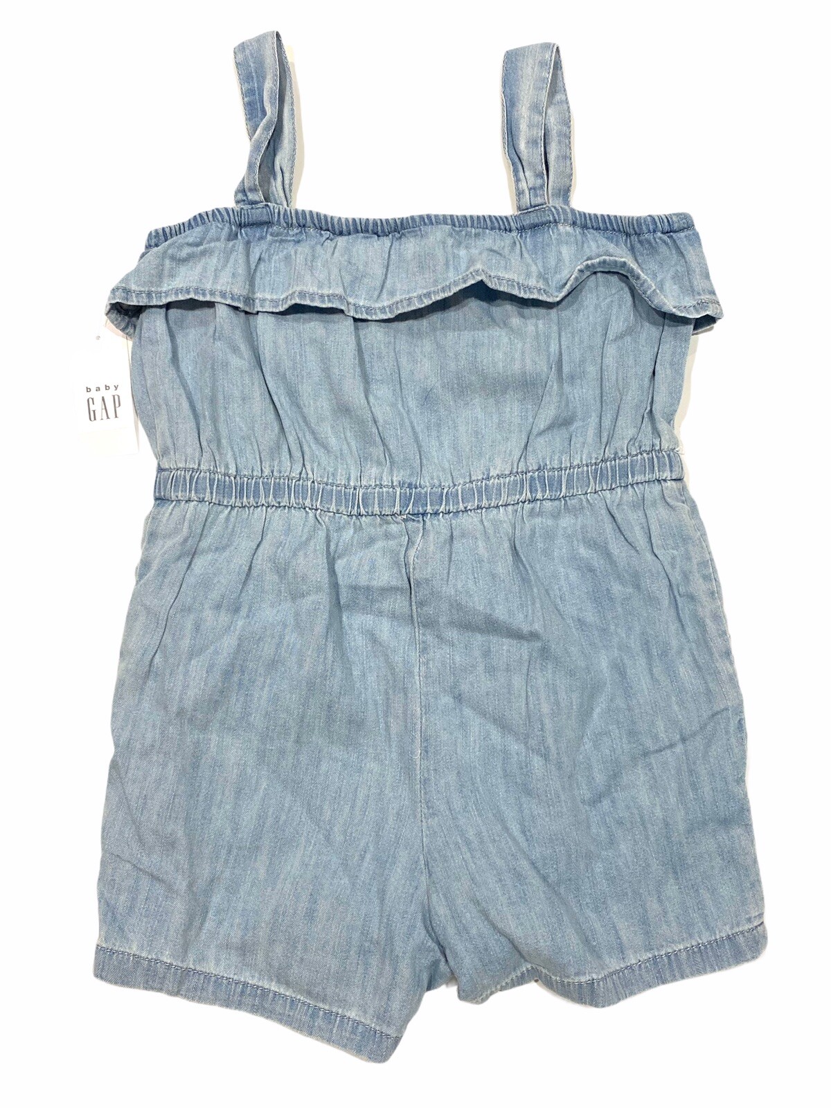 NWT GAP Baby Girl Romper 3T-4T-5T Light Blue Pockets Ruffle Elastic Waist 54445