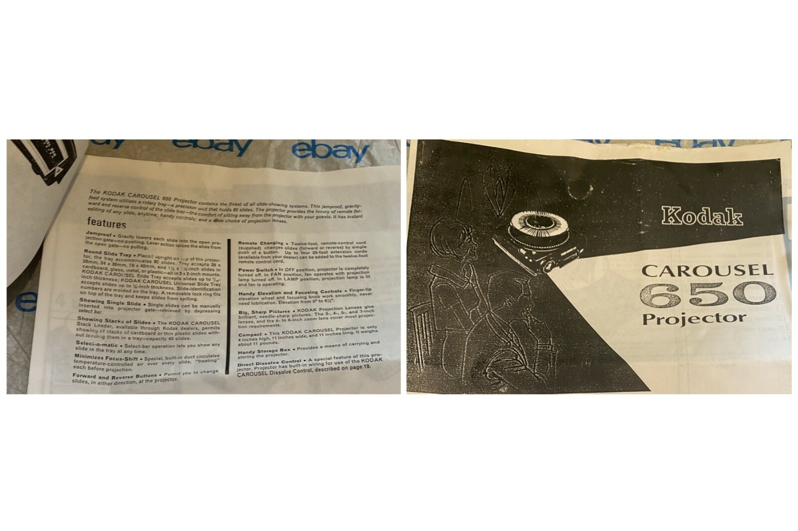 Kodak Carousel 650 Projector Salvaged Parts Lenses, Power Cord, Remote, Lamps