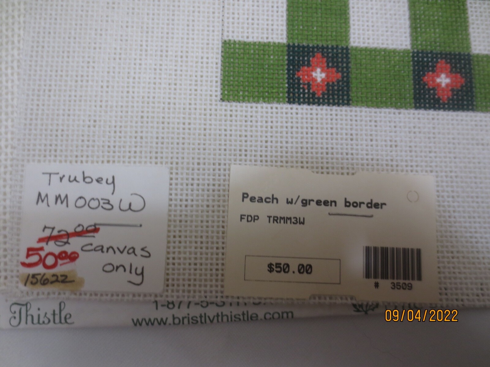 как выглядит 2 Vintage Printed Needlepoint Canvas Bristly Thistle Gail Gunder Trubey Peach фото