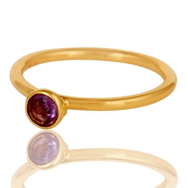 Natural Amethyst 18K Gold Plated 925 Sterling Silver Ring Gemstone Jewelry