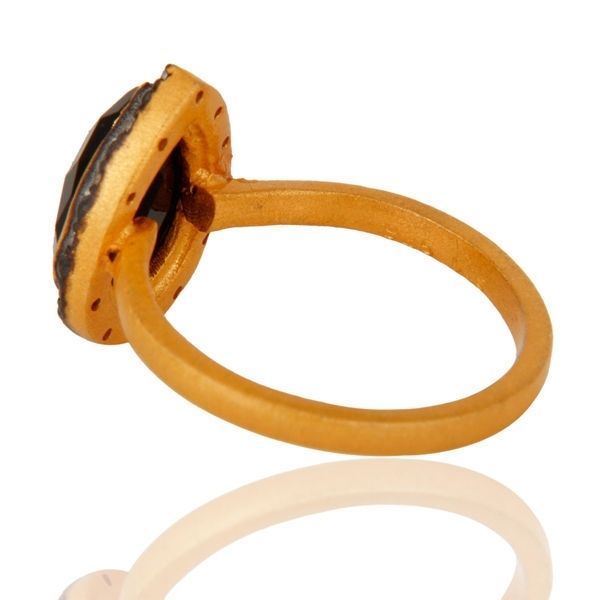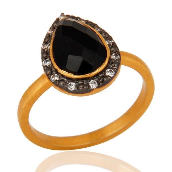 925 Sterling Silver Natural Black Onyx Gemstone 22K Gold Plated Ring CZJewelry