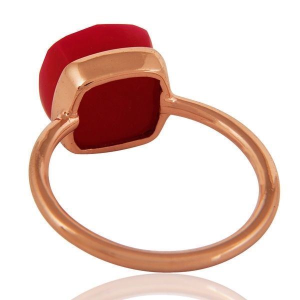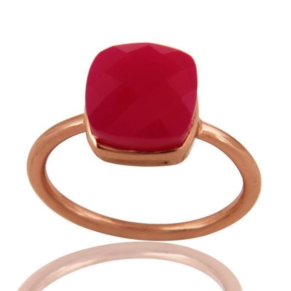 Natural Pink Chalcedony 925 Sterling Silver Ring Rose Gold Plated Jewelry