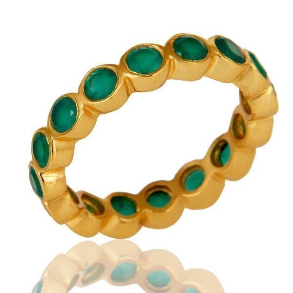 как выглядит Green Onyx 18K Gold Plated 925 Sterling Silver Band Ring Jewelry фото