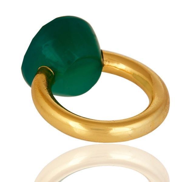 как выглядит Natural Green Onyx Gemstone 18K Gold Plated 925 Sterling Silver Ring Jewelry фото