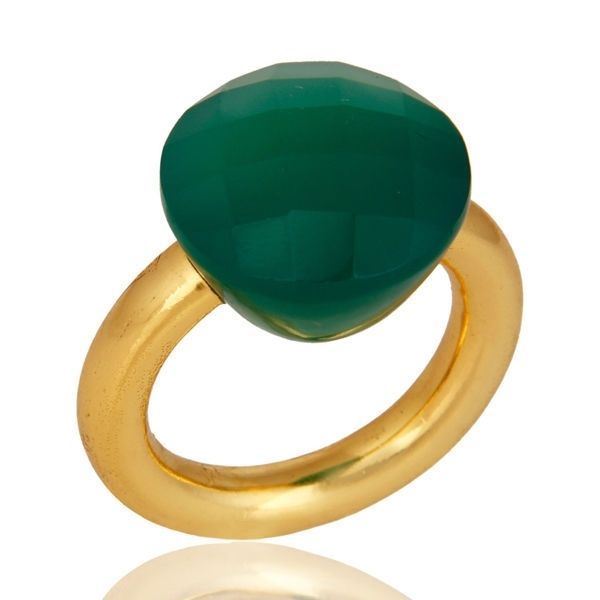 Natural Green Onyx Gemstone 18K Gold Plated 925 Sterling Silver Ring Jewelry